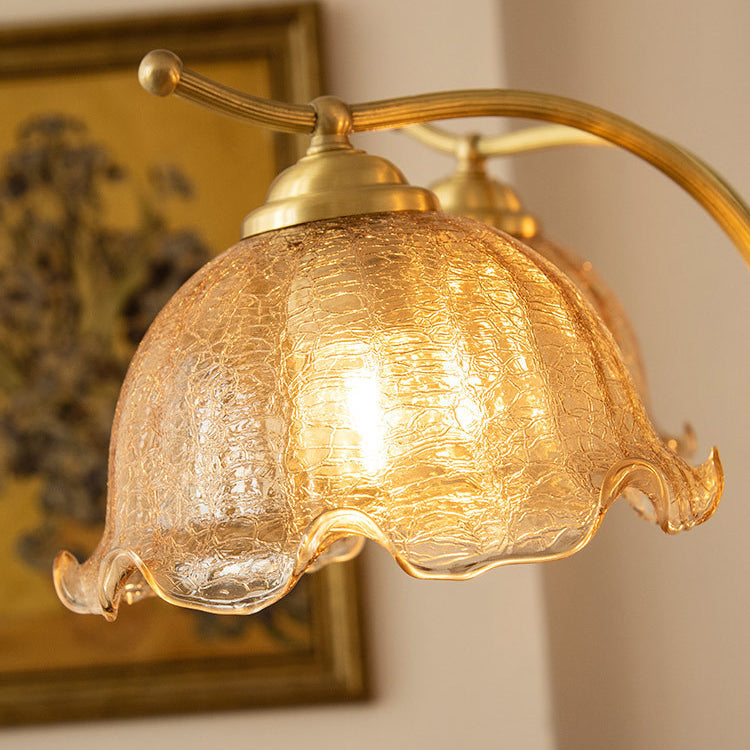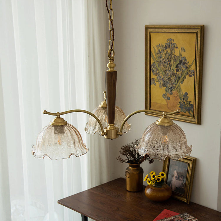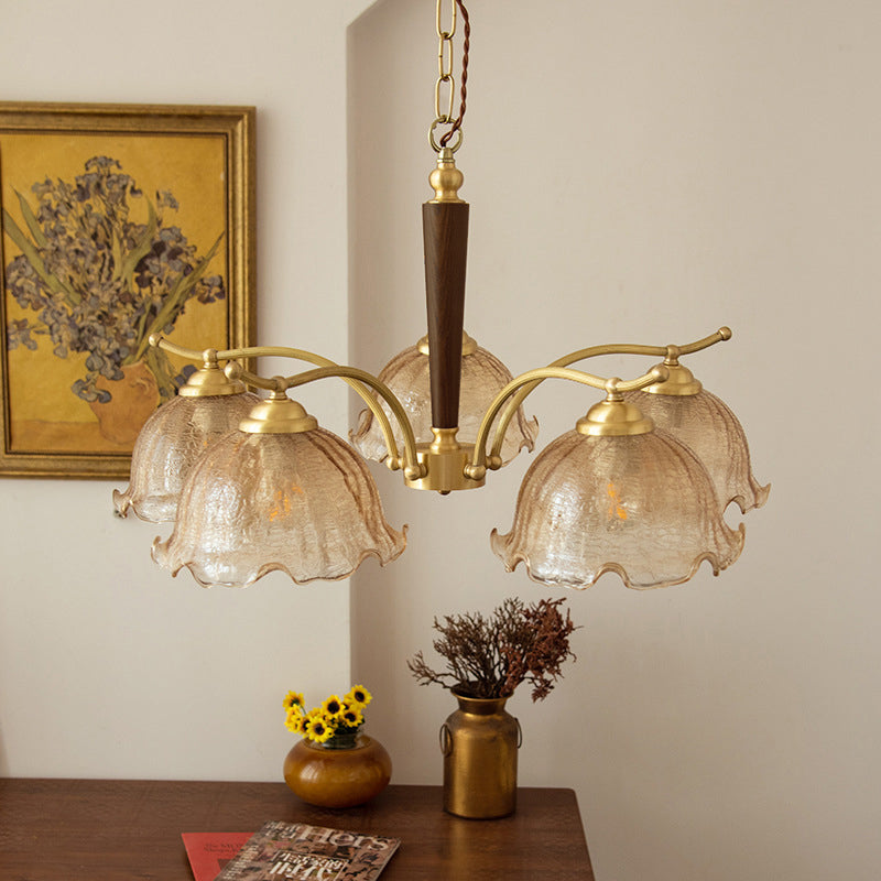 Traditional Vintage Petals All Copper Log Glass 3/5 Light Chandelier For Living Room