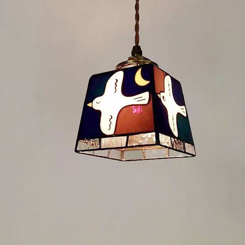 Traditional Vintage Prismatic Dove Square Copper Glass 1-Light Pendant Light For Living Room