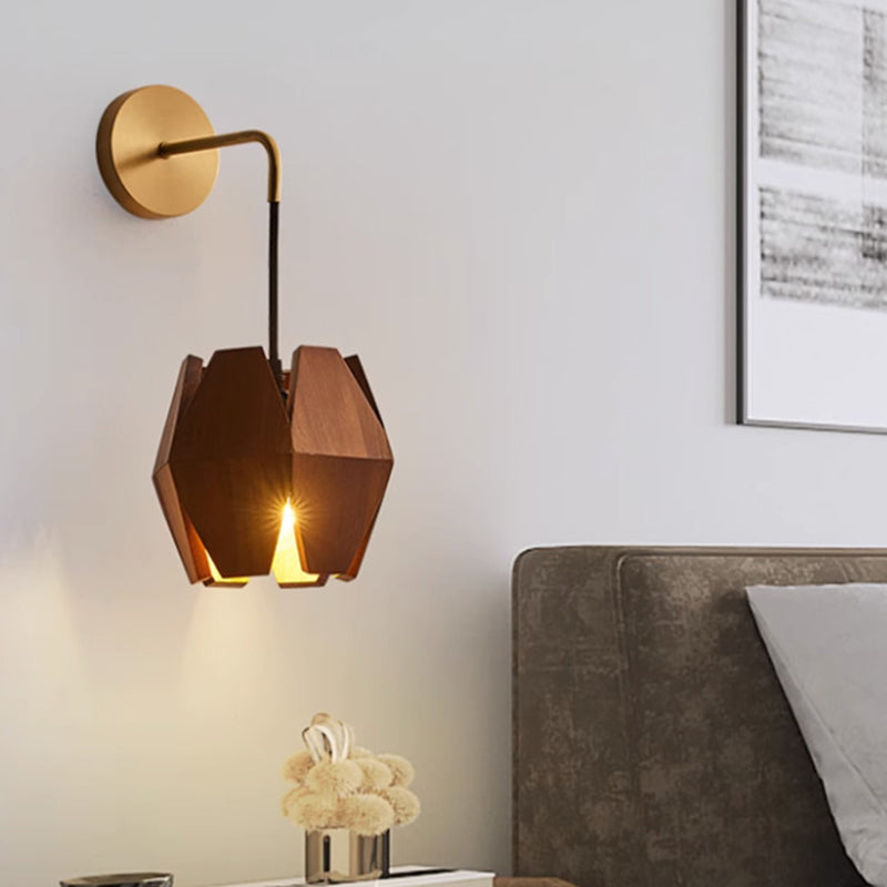 Traditional Vintage Prismatic Patchwork Wood Iron 1-Light Wall Sconce Lamp For Living Room