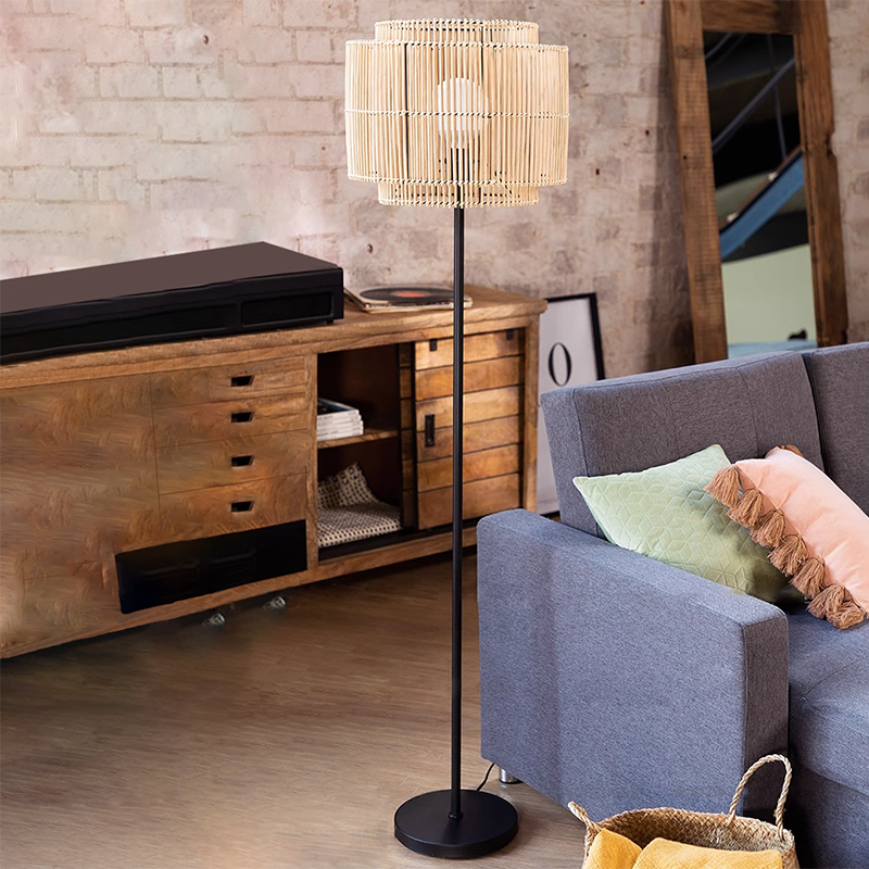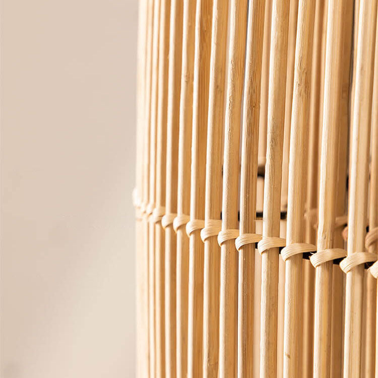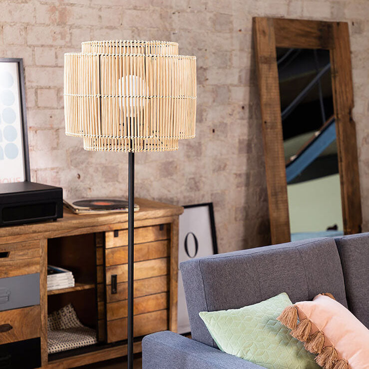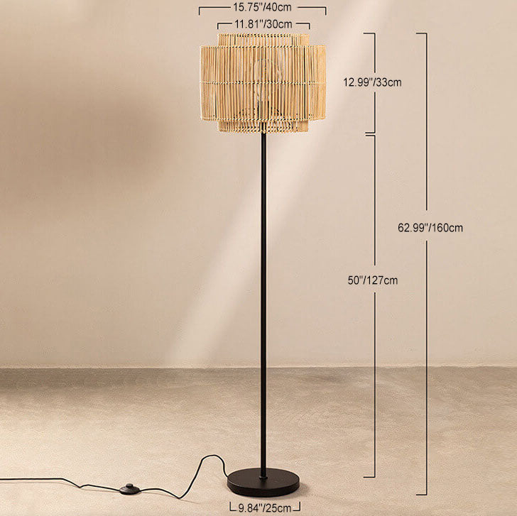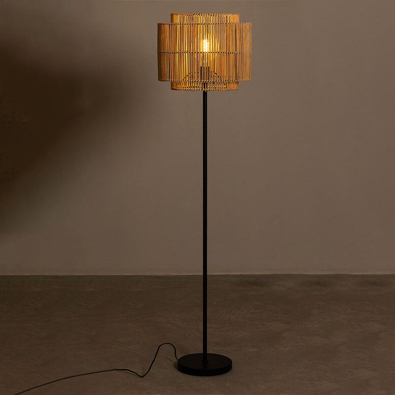 Traditional Vintage Rattan Weaving Cylinder 1-Light Standing Floor Lamp For Home Office