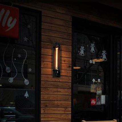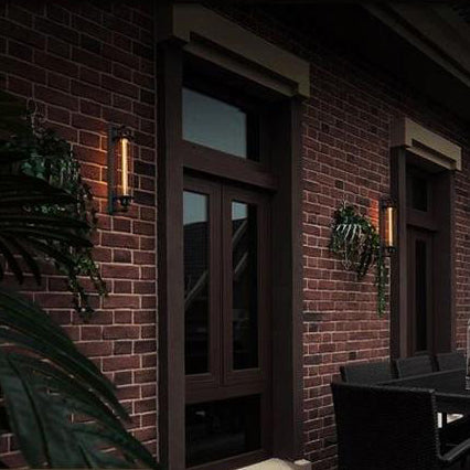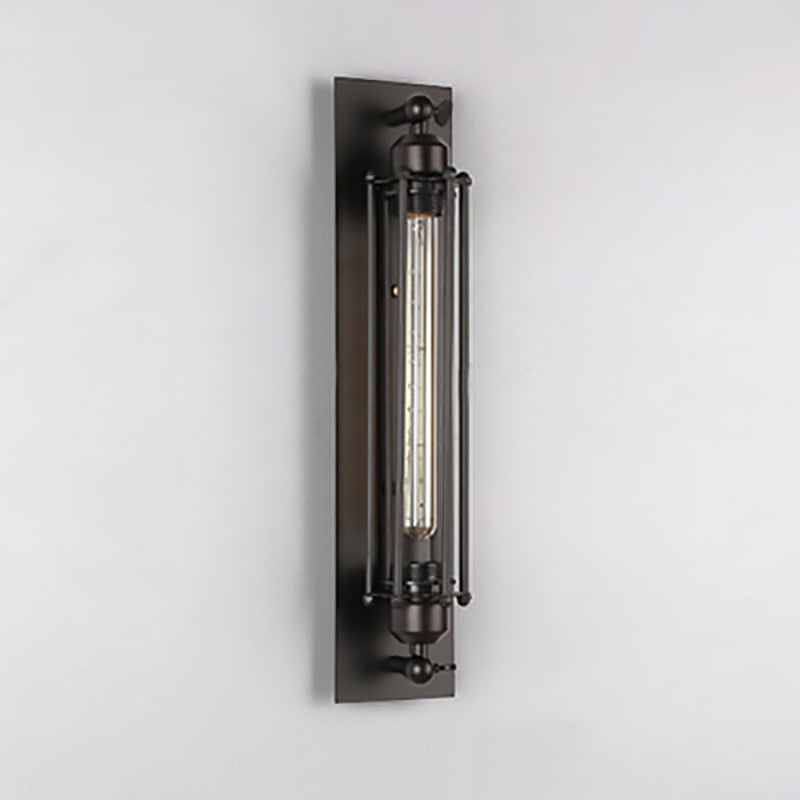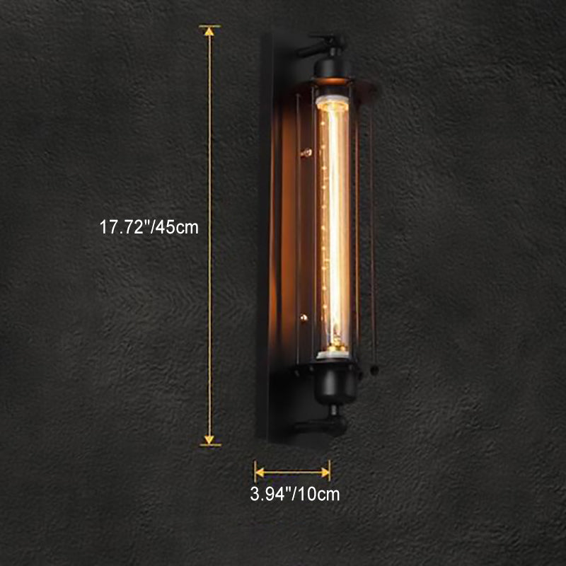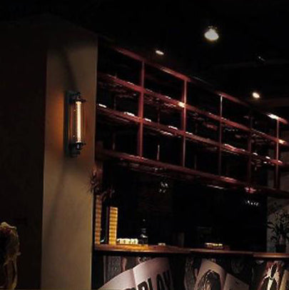 Traditional Vintage Rectangle Cylinder Glass Iron 1-Light Wall Sconce Lamp For Living Room