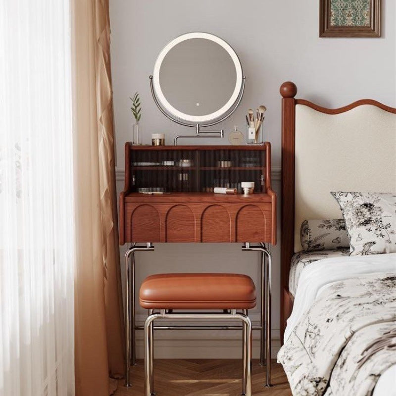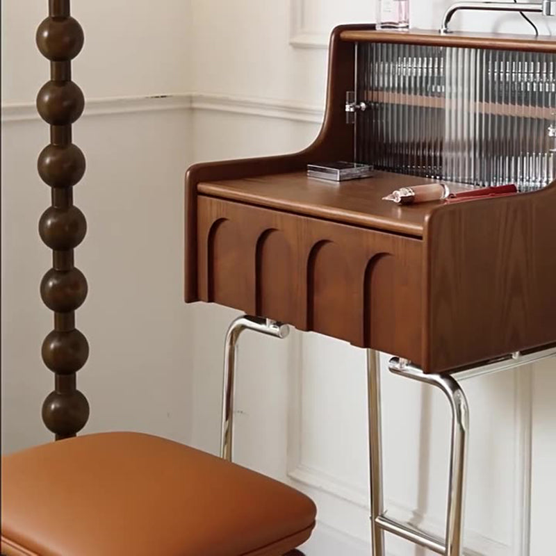 Traditional Vintage Rectangle Wood Glass Mirror Makeup Vanity 1-Drawer For Bedroom