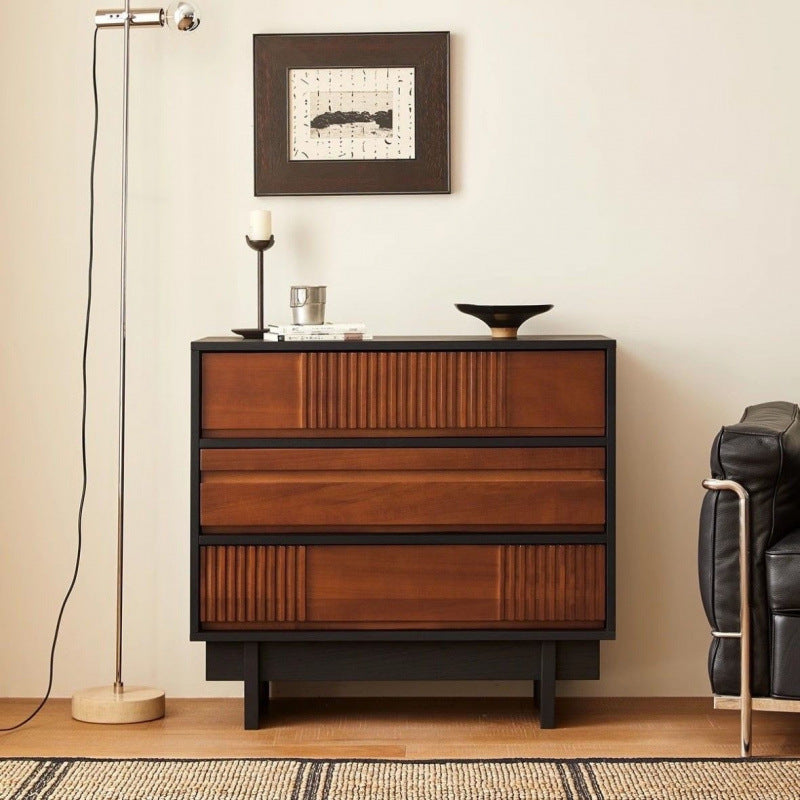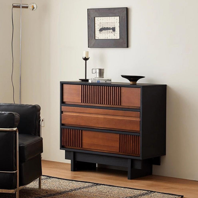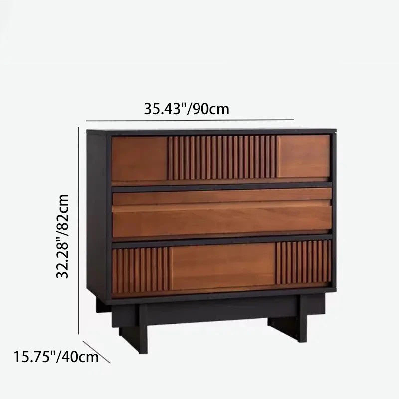 Traditional Vintage Rectangular Solid Wood Rubberwood & Solid Wood Multi-Layer Board Storage Cabinet 3-Cabinet For Bedroom
