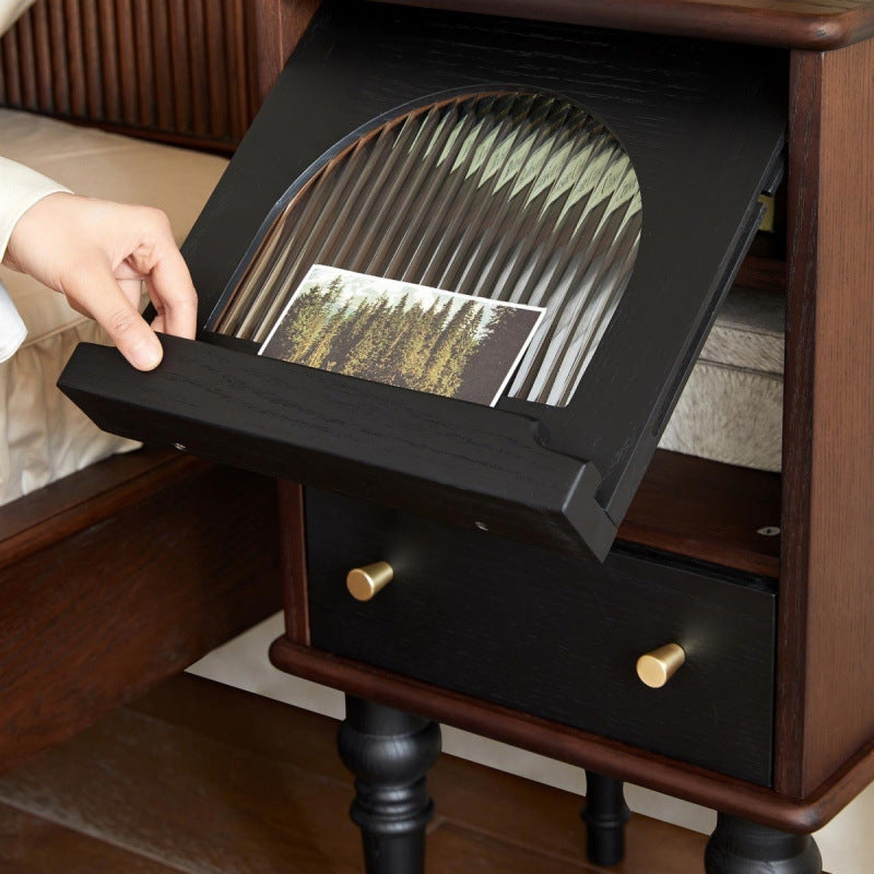 Traditional Vintage Rectangular Wood Nightstand 1-Drawer For Bedroom