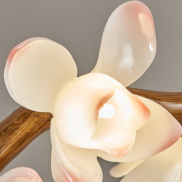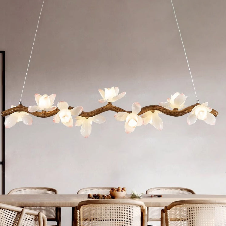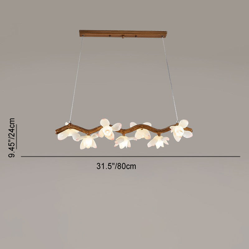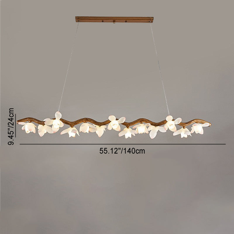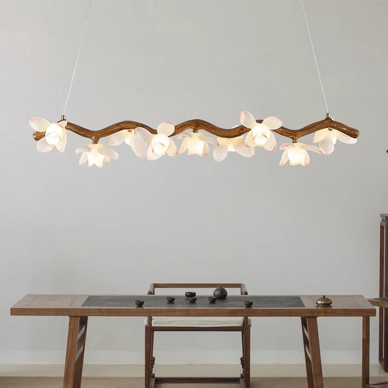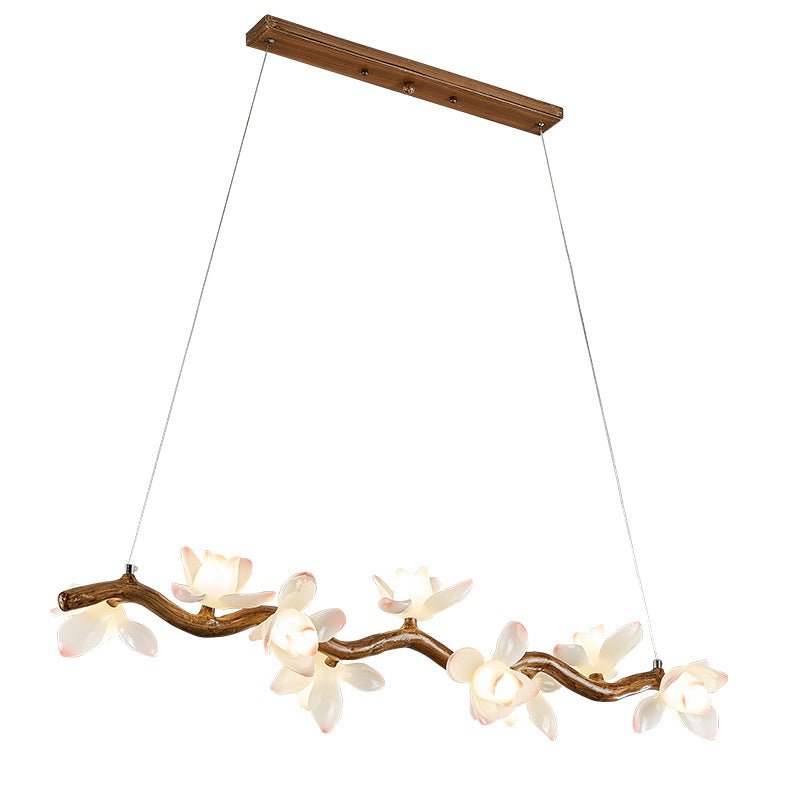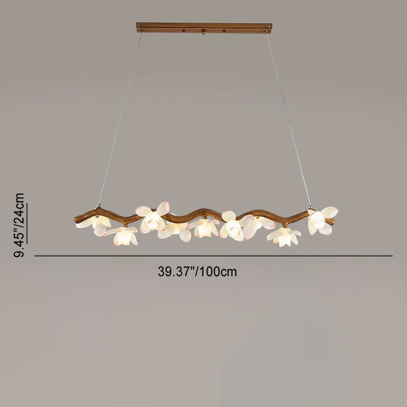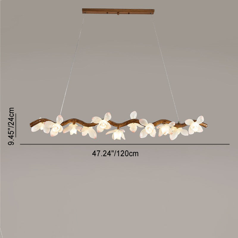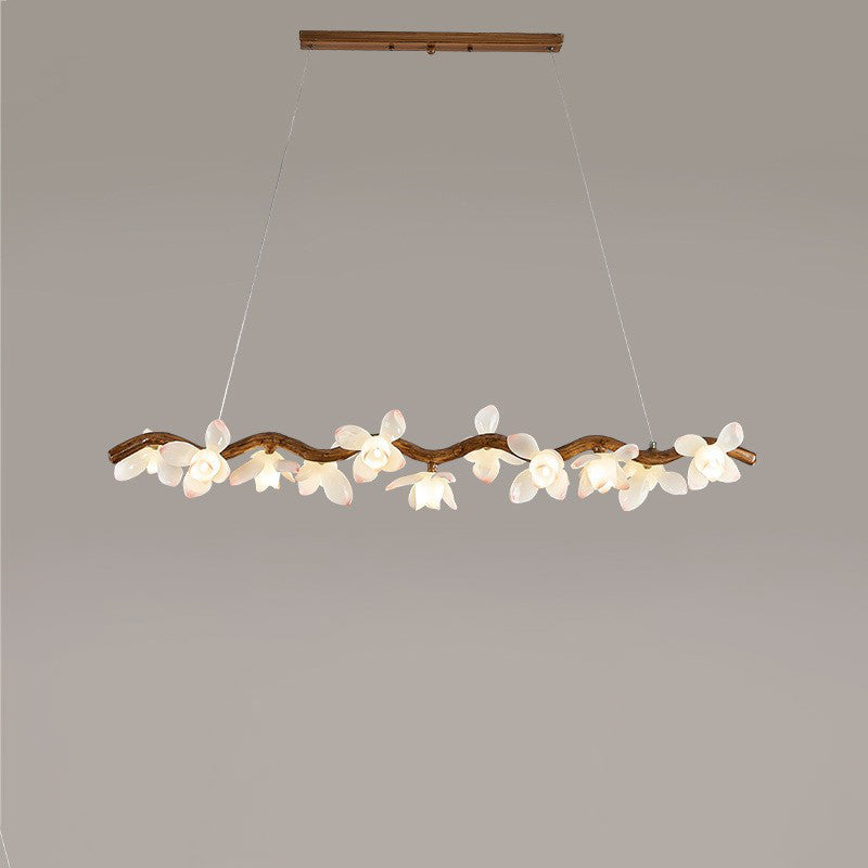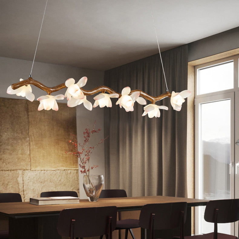 Traditional Vintage Resin Branch Lotus Petal Glass Shade 7/9/11/13-Light Chandelier Island Light For Living Room