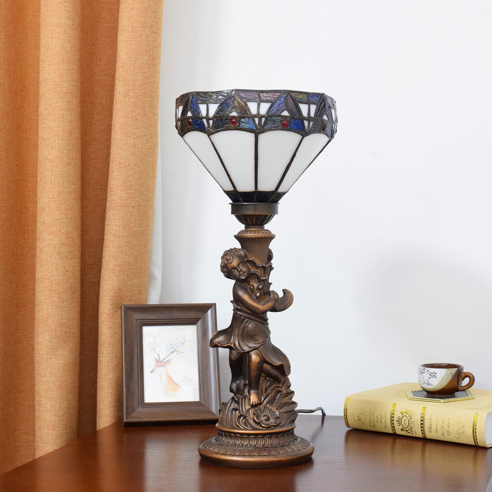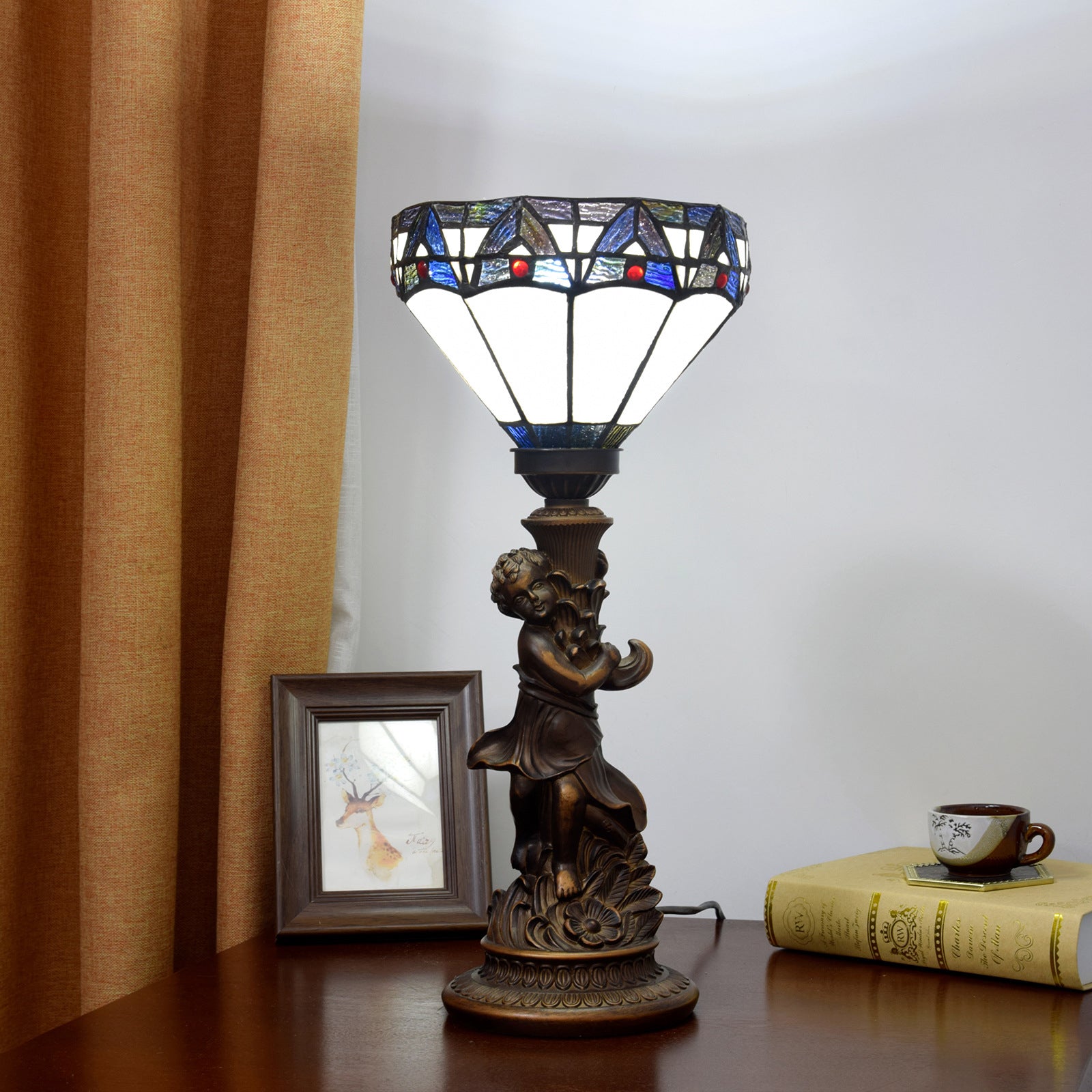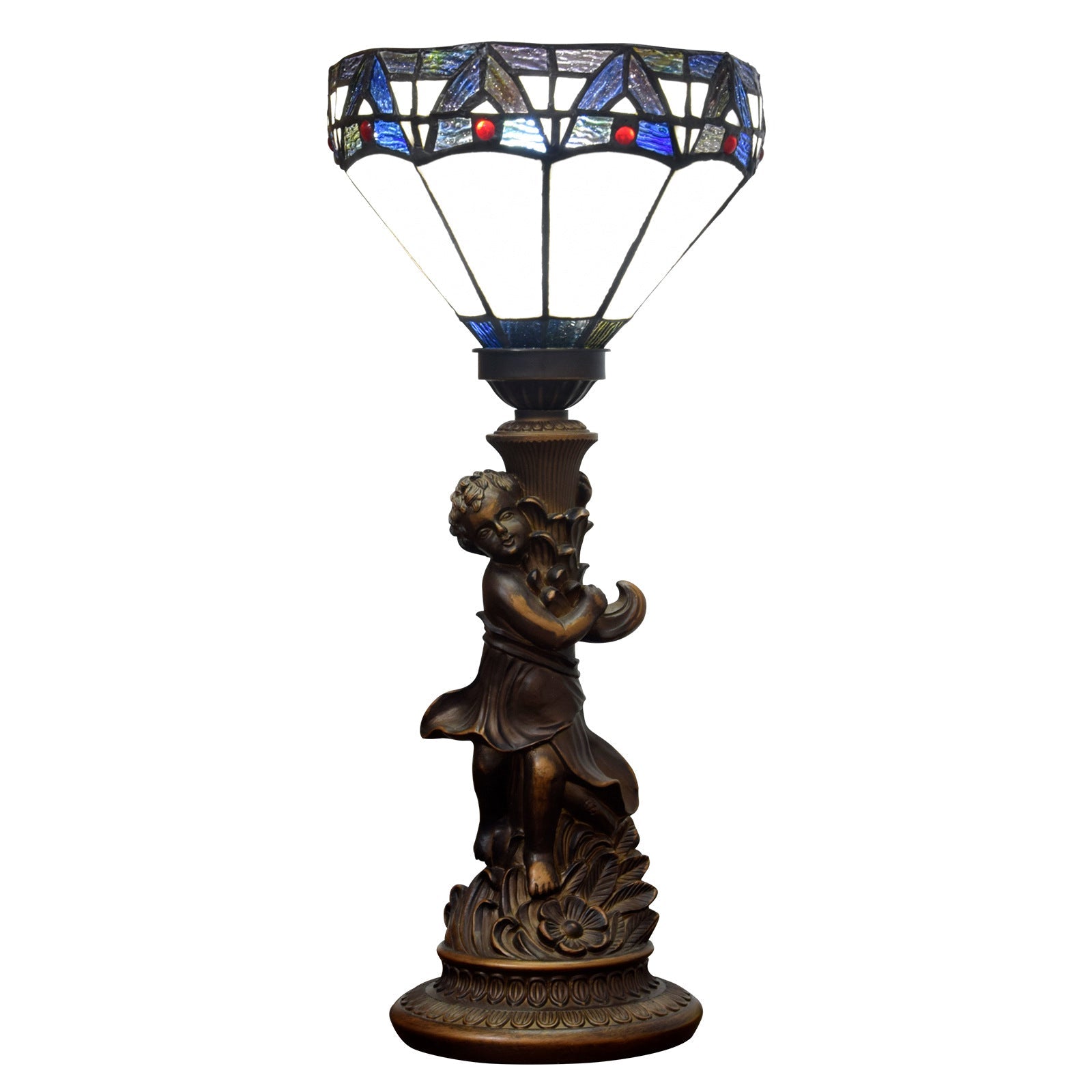 Traditional Vintage Resin Glass Diamond Boy 1-Light Table Lamp For Living Room