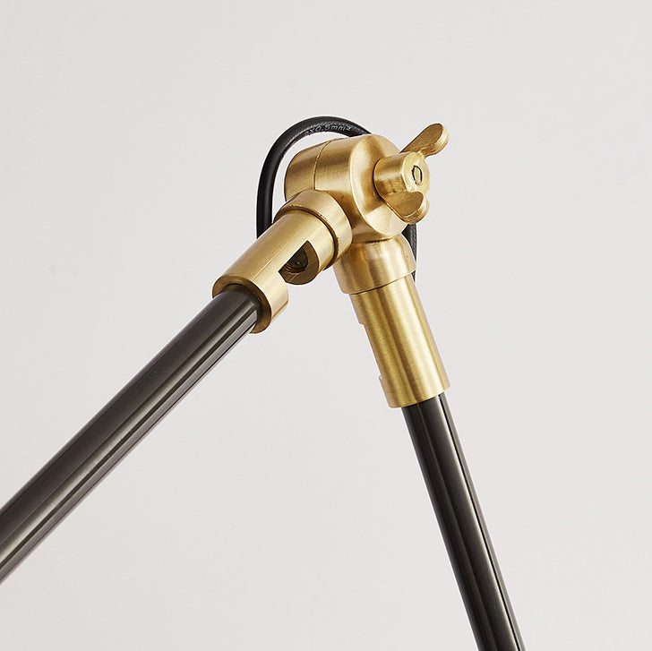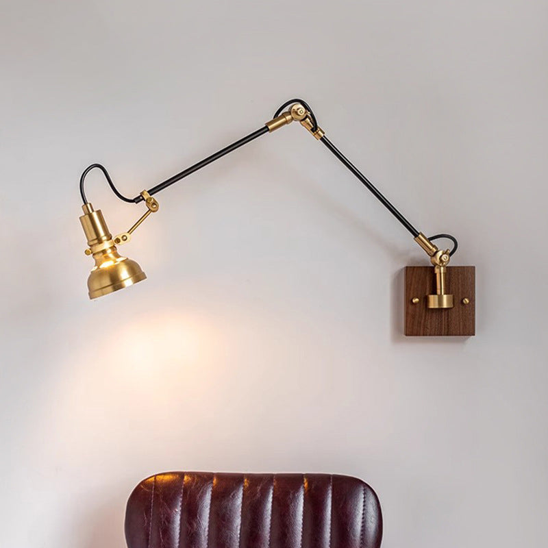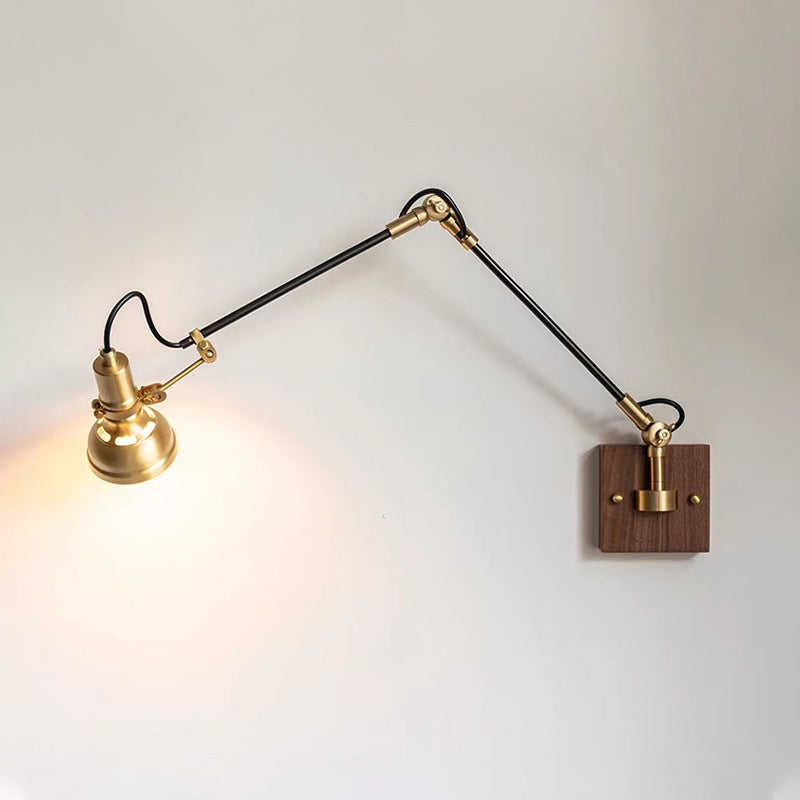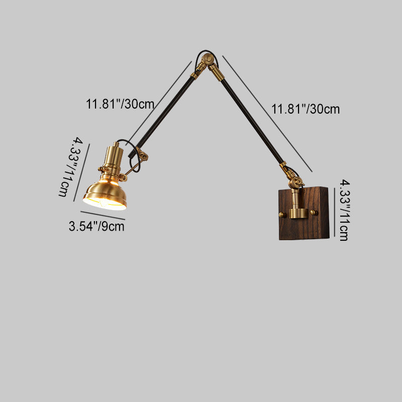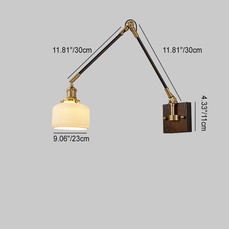 Traditional Vintage Retractable Pole Round Trapezoidal Iron Wood Glass 1-Light Wall Sconce Lamp For Bedroom