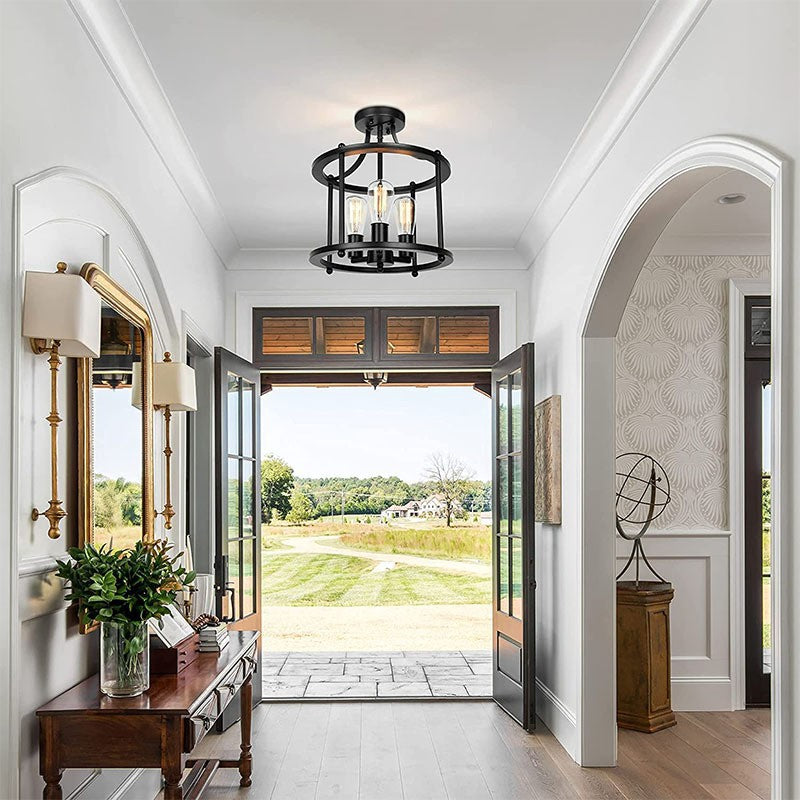 Traditional Vintage Ring Iron 3-Light Semi-Flush Mount Ceiling Light For Living Room
