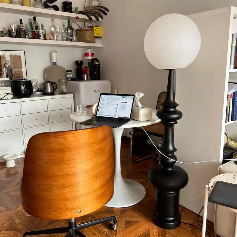 Traditional Vintage Roman Column Round Acrylic Resin 1-Light Standing Floor Lamp For Bedroom