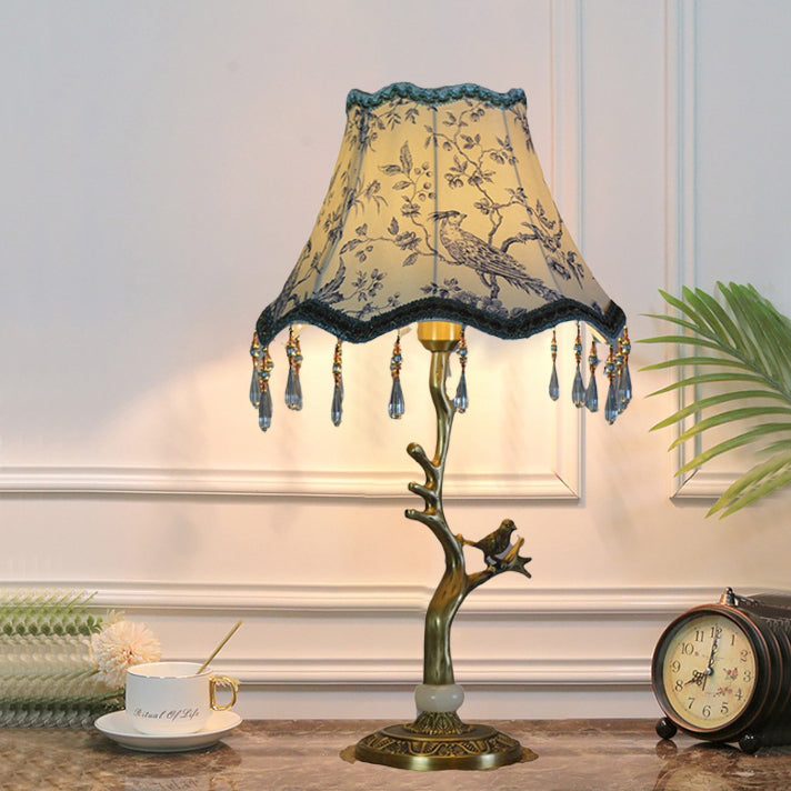 Traditional Vintage Root Base Bird Copper Fabric 1-Light Table Lamp For Bedroom