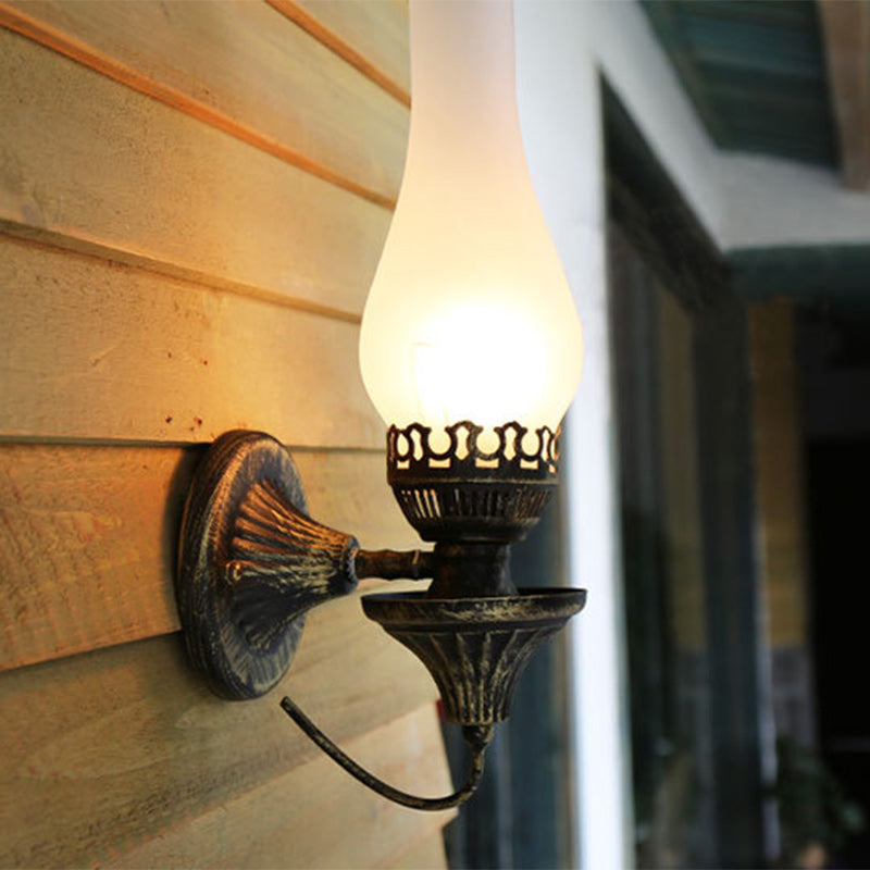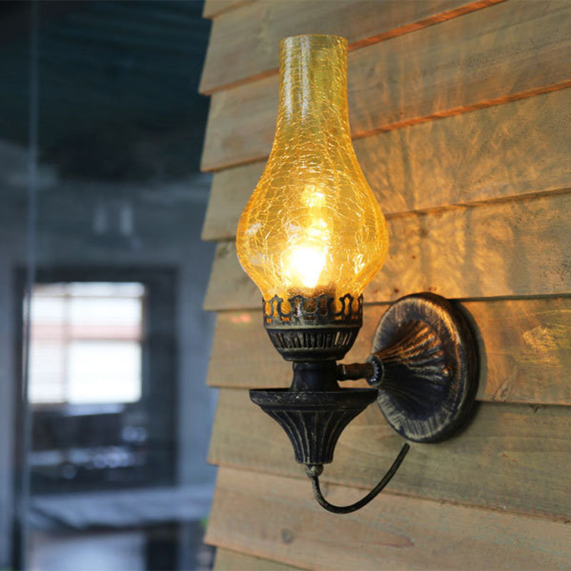 Traditional Vintage Round Ball Cylinder Glass Iron 1-Light Wall Sconce Lamp For Living Room
