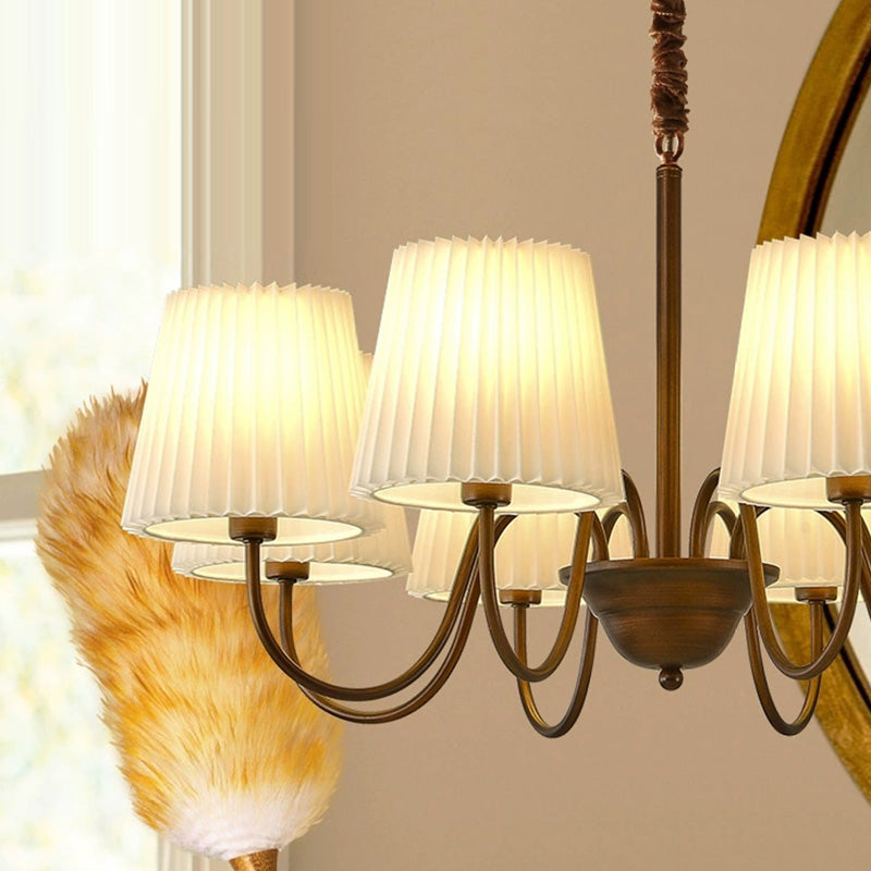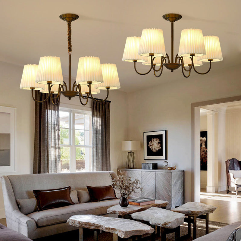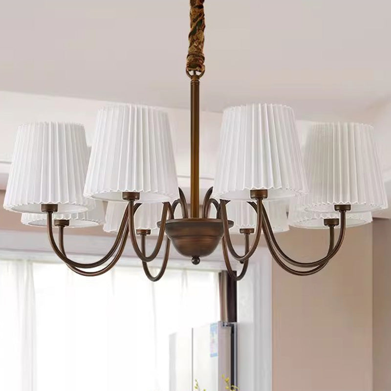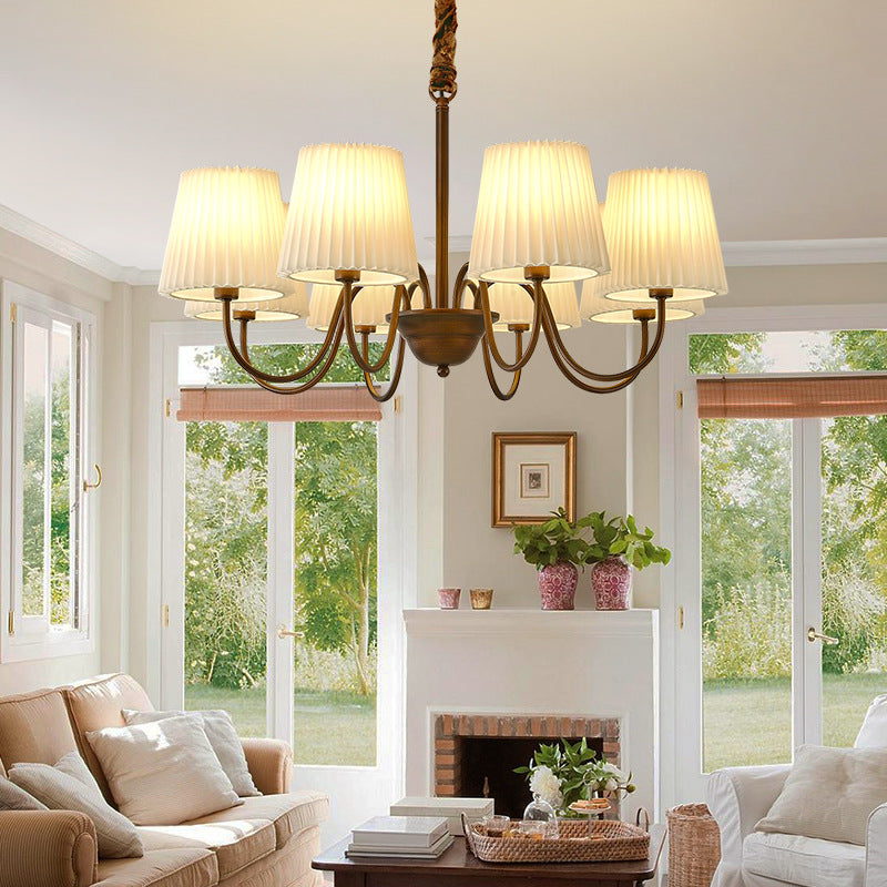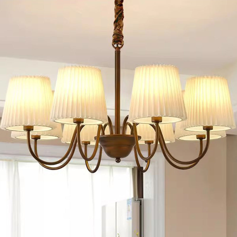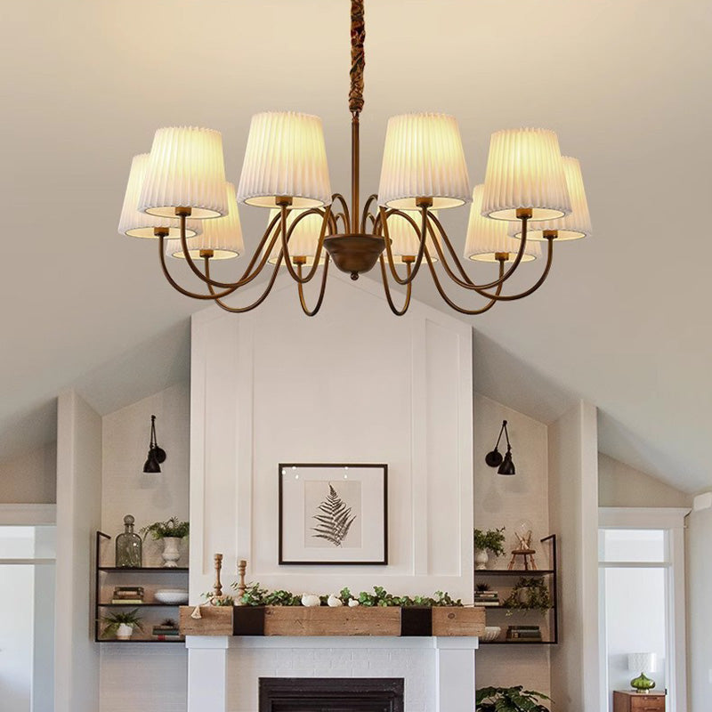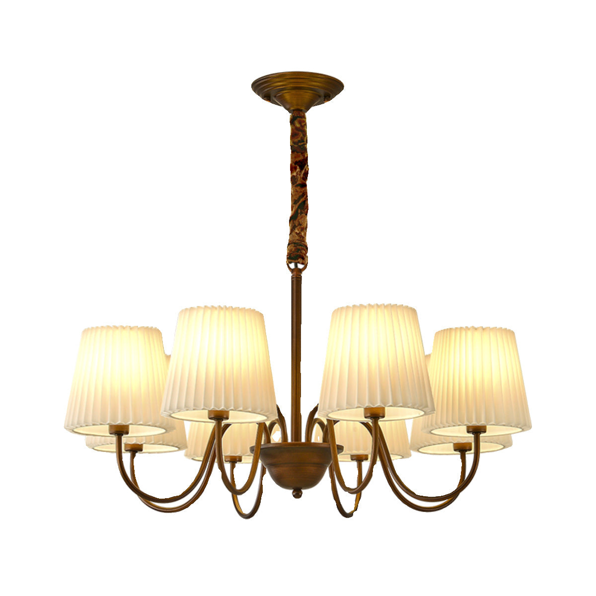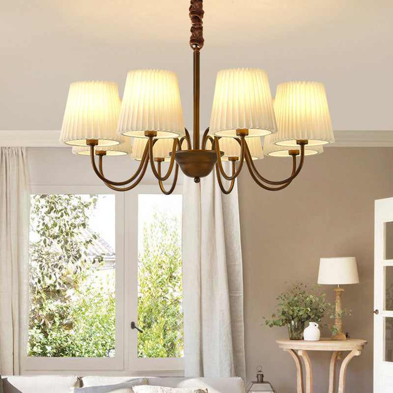 Traditional Vintage Round Branch Curved Fabric Iron 3/6/8/10 Light Chandelier For Living Room
