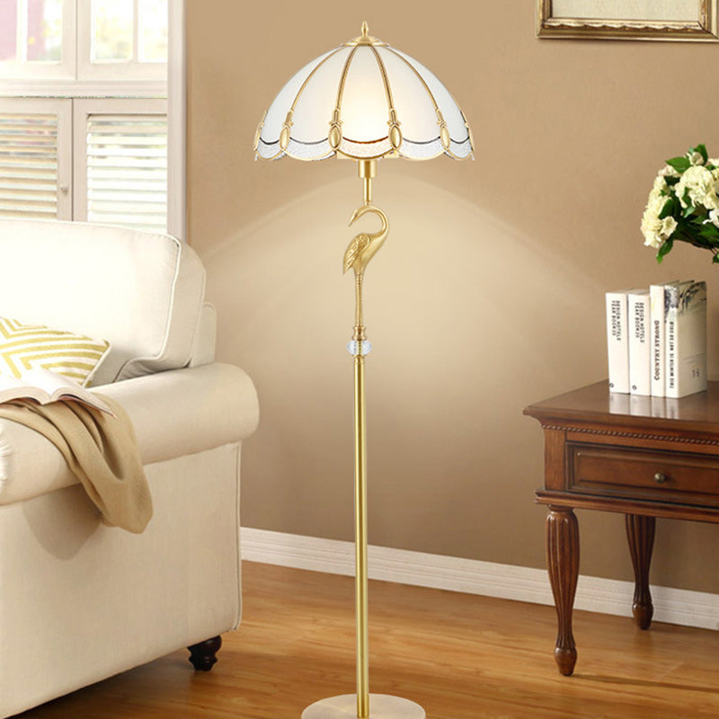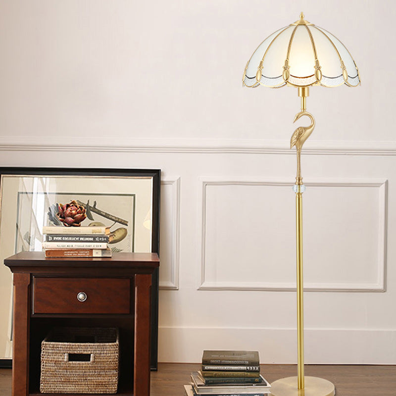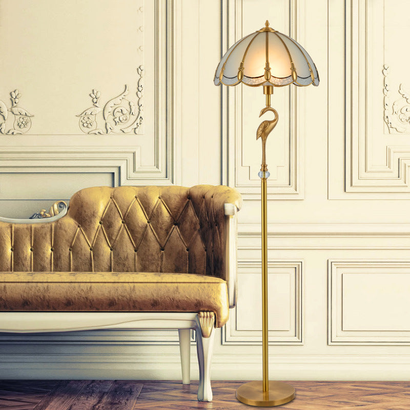Traditional Vintage Round Cone Copper Glass 1-Light Standing Floor Lamp For Bedroom