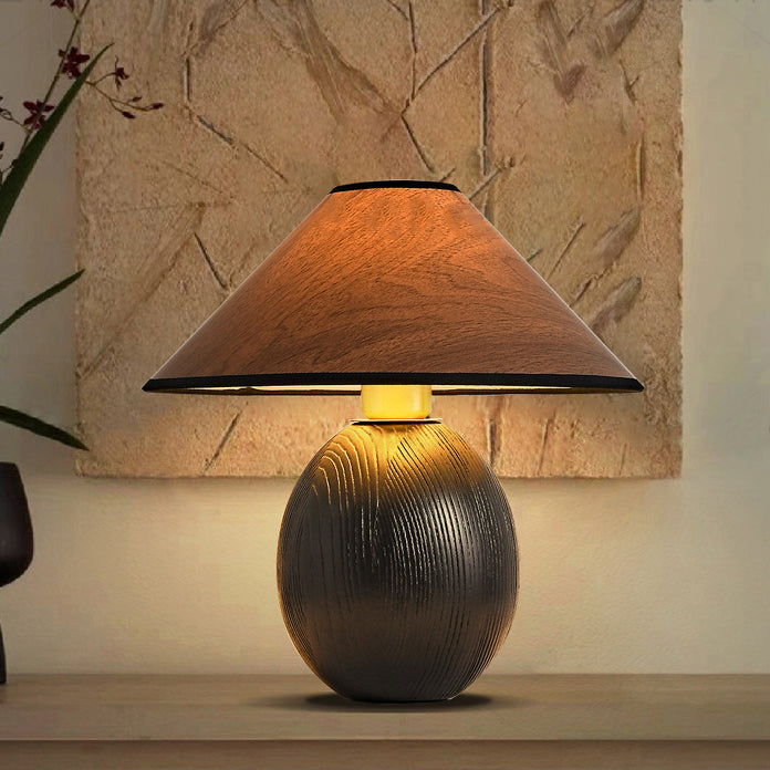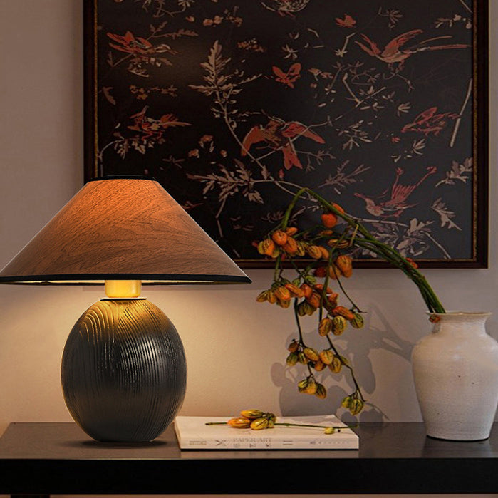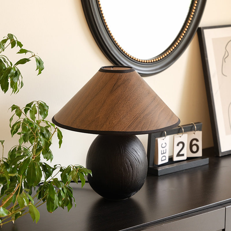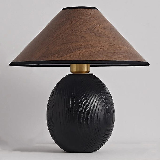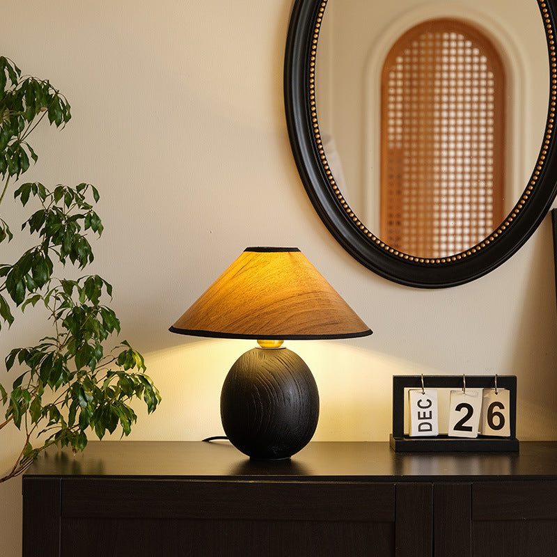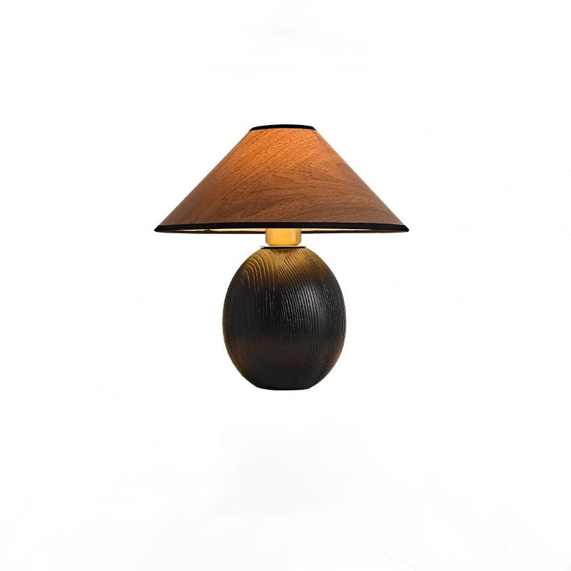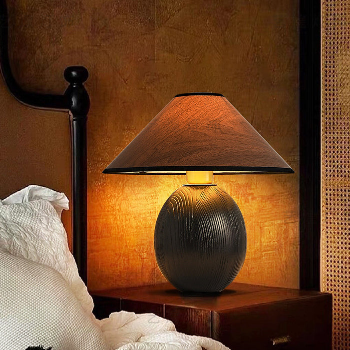 Traditional Vintage Round Conical Jar Base Solid Wood 1-Light Table Lamp For Bedroom