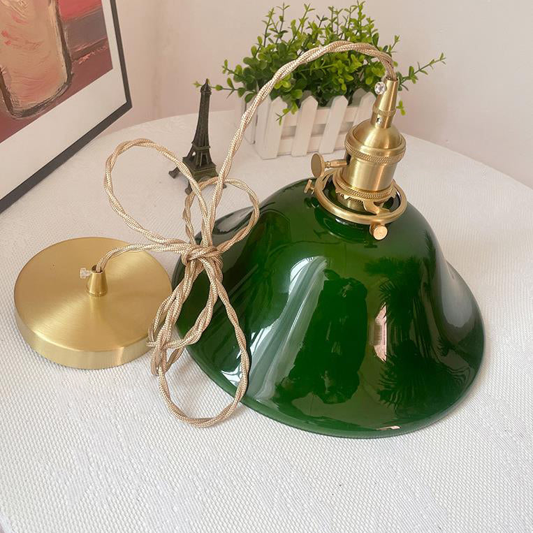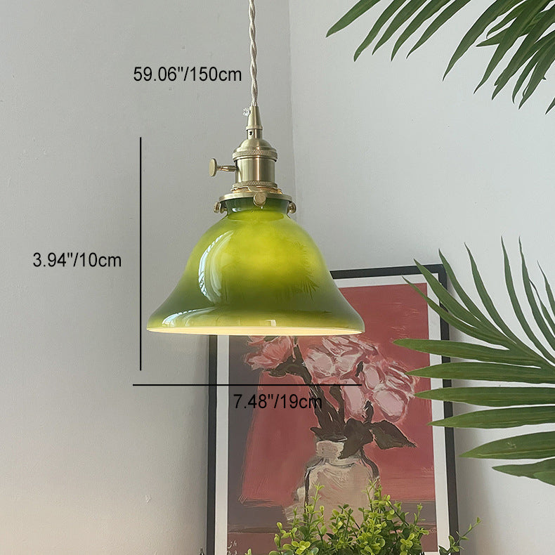 Traditional Vintage Round Copper Glass 1-Light Pendant Light For Living Room
