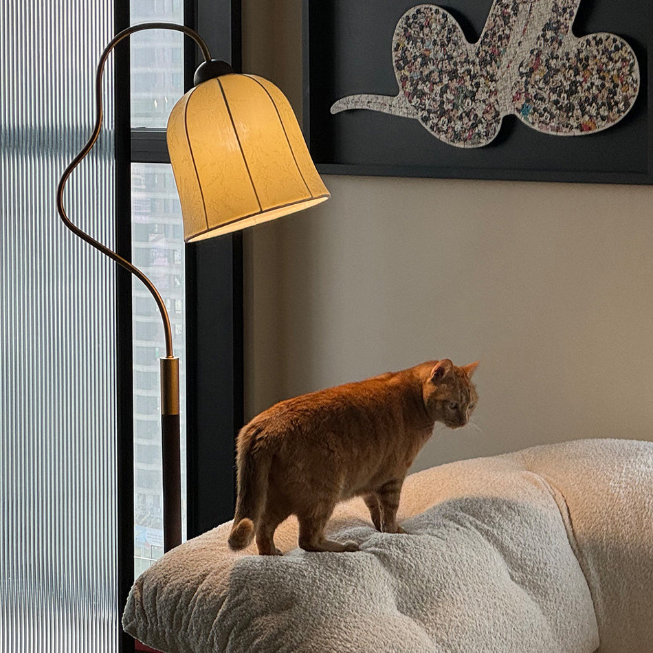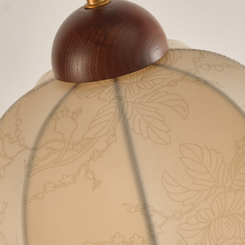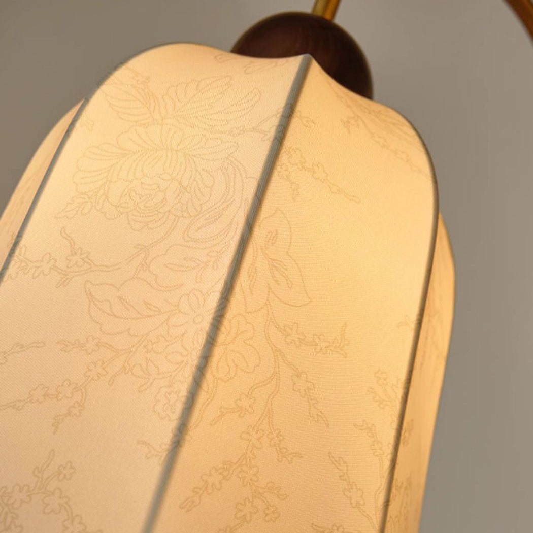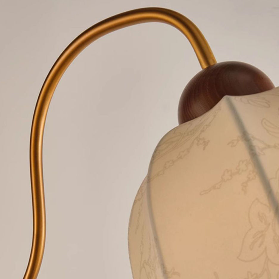 Traditional Vintage Round Curved Wood Fabric 1-Light Standing Floor Lamp For Bedroom