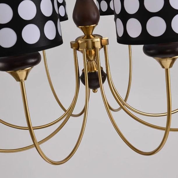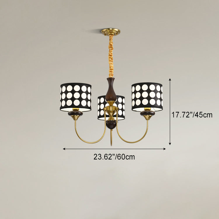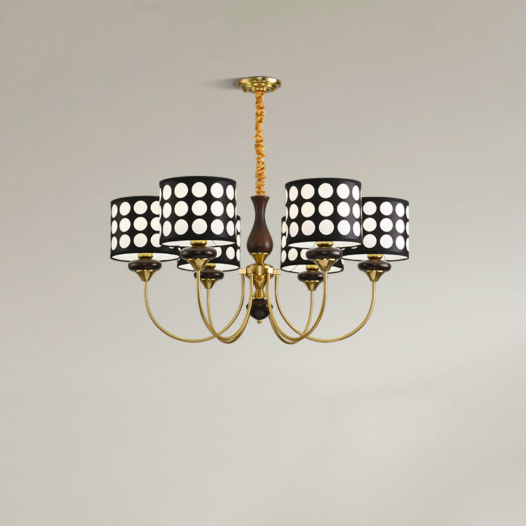 Traditional Vintage Round Cylinder Branch Fabric Ash Wood Hardware 3/6/8 Light Chandelier For Living Room