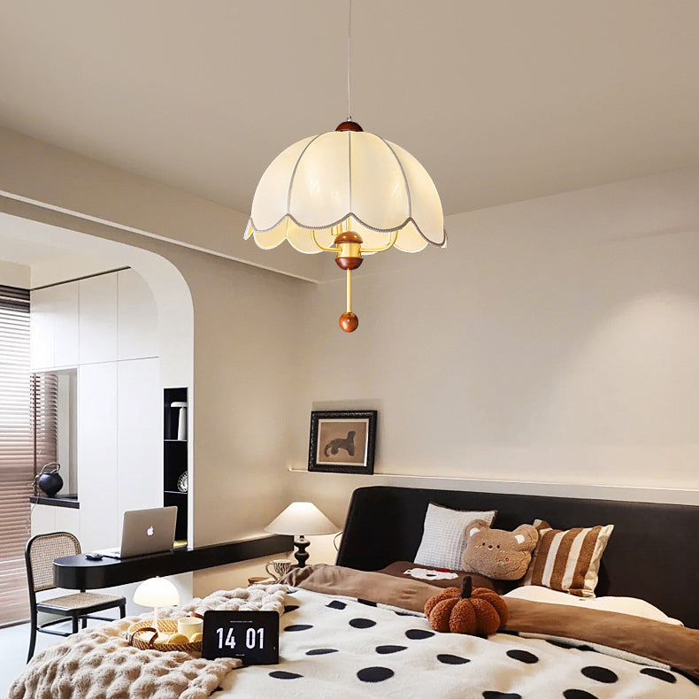 Traditional Vintage Round Dome Floral Print Full Copper Fabric Shade 3-Light Pendant Light For Living Room