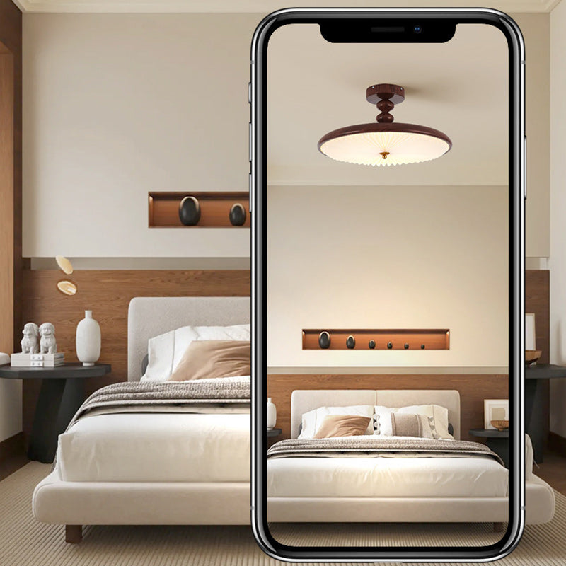 Traditional Vintage Round Iron Plastic LED Semi-Flush Mount Ceiling Light For Living Room