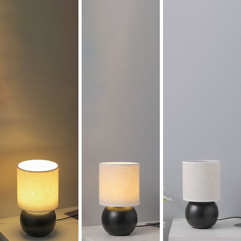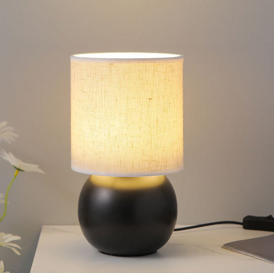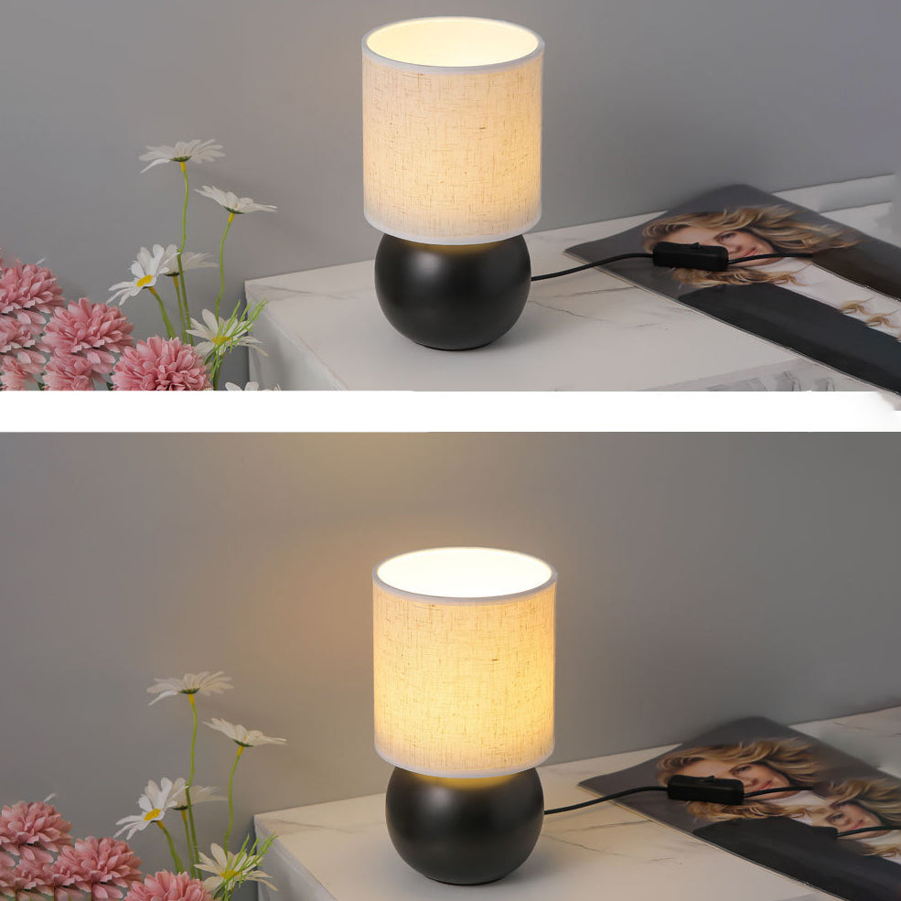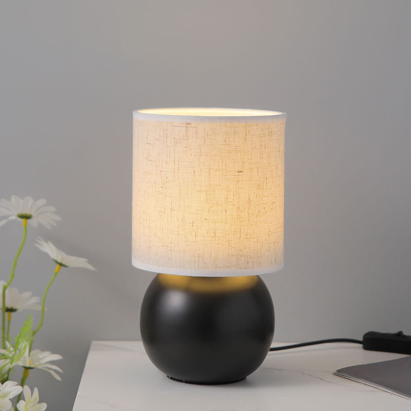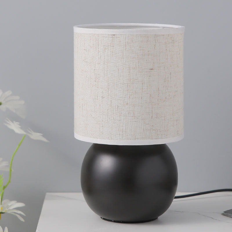 Traditional Vintage Round Orb Ceramic Fabric LED Table Lamp For Bedroom