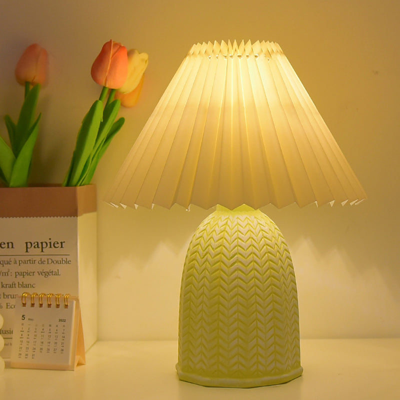 Traditional Vintage Scalloped Cylinder Round Fabric Ceramic LED Table Lamp For Living Room
