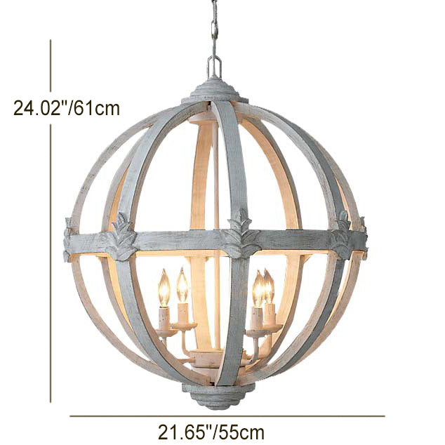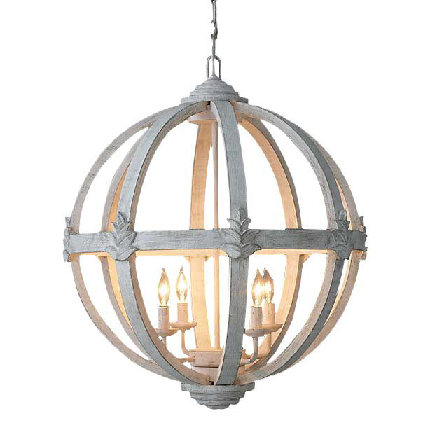 Traditional Vintage Solid Wood Iron Sphere Shade Candelabra 1-Light Pendant For Living Room