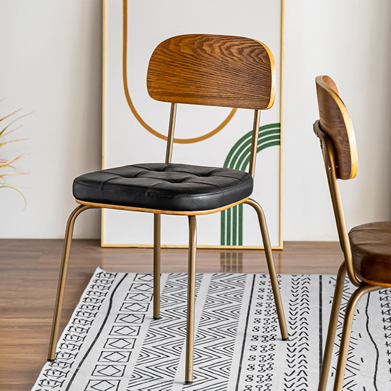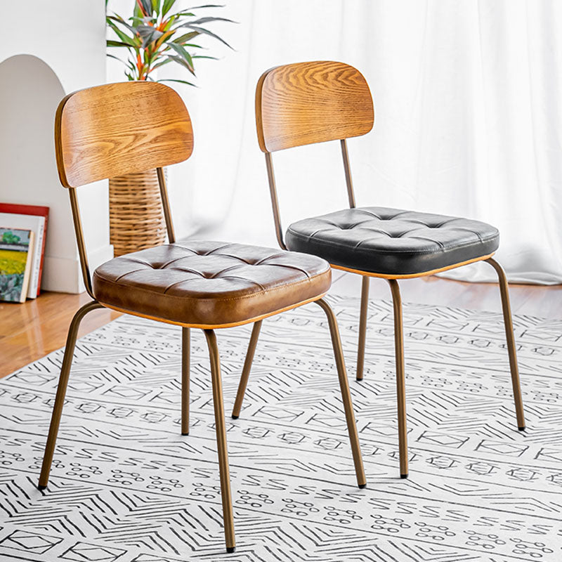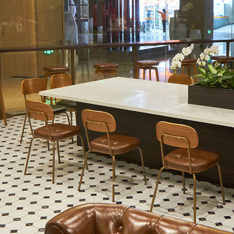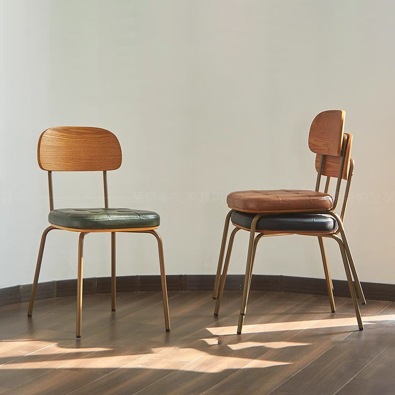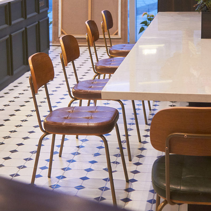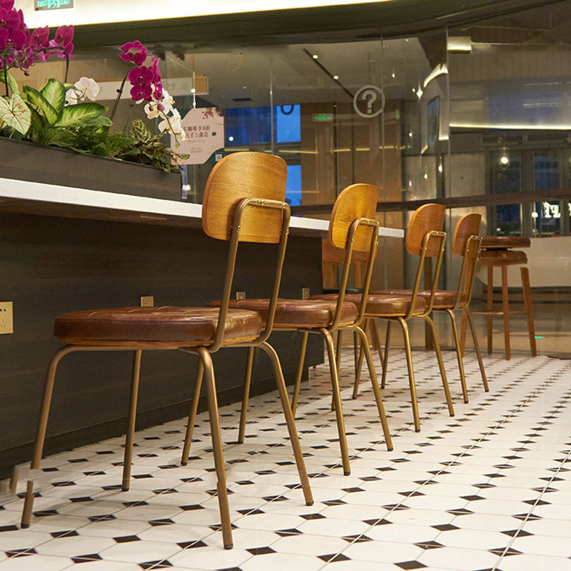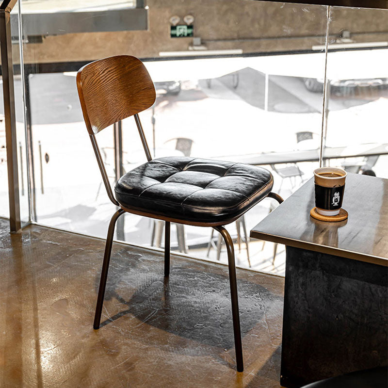 Traditional Vintage Square Cushion Iron PU Leather Sponge Dining Chair Backrest For Dining Room