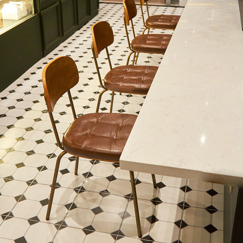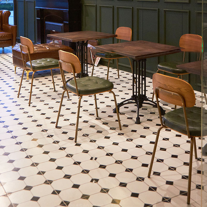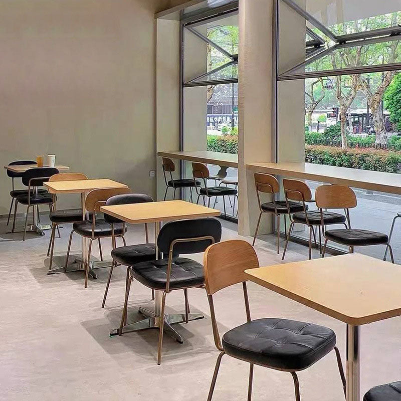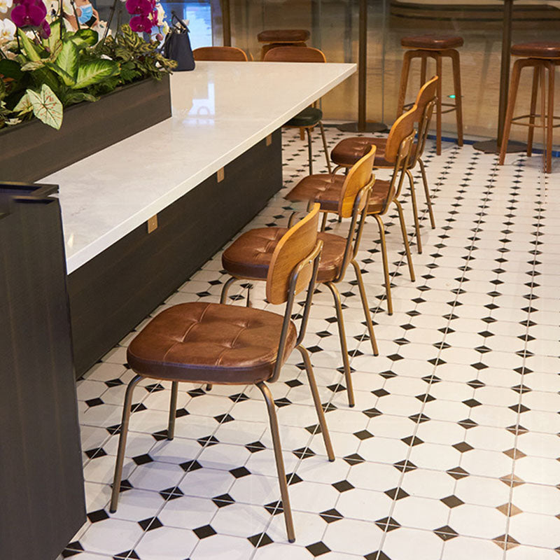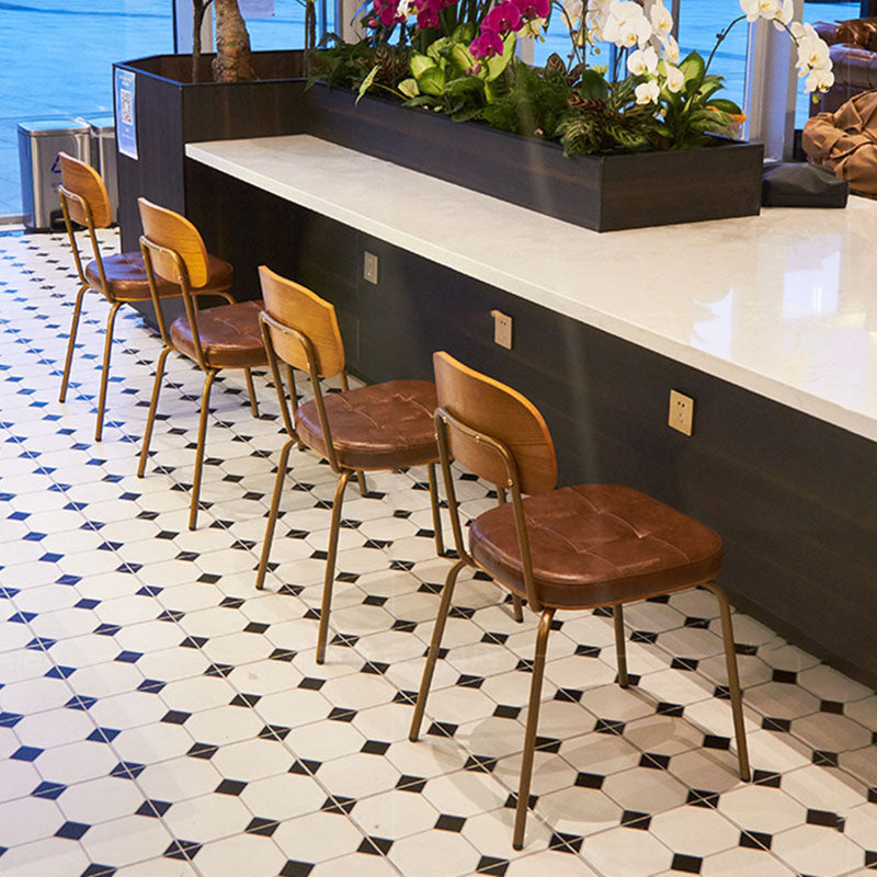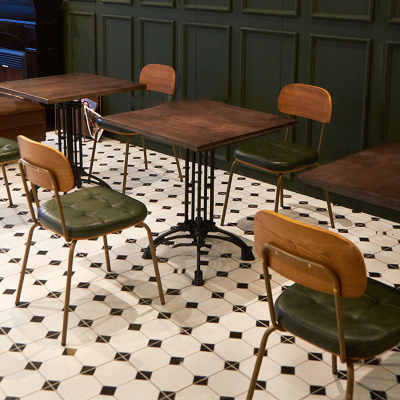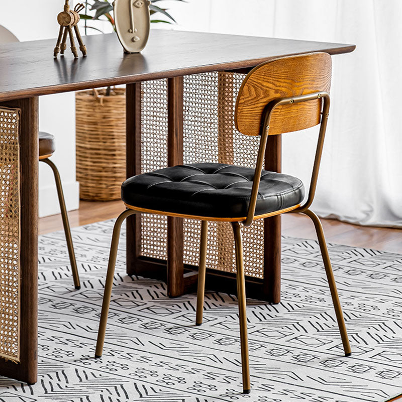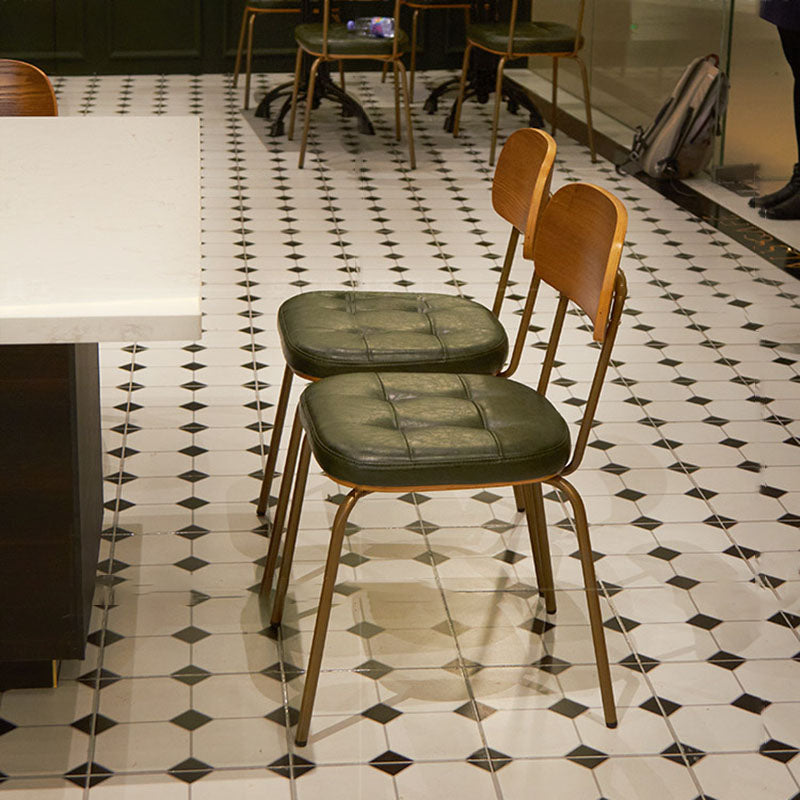 Traditional Vintage Square Cushion Iron PU Leather Sponge Dining Chair Backrest For Dining Room