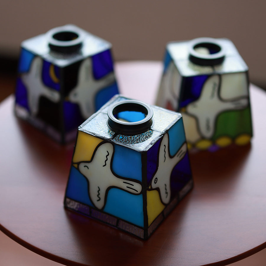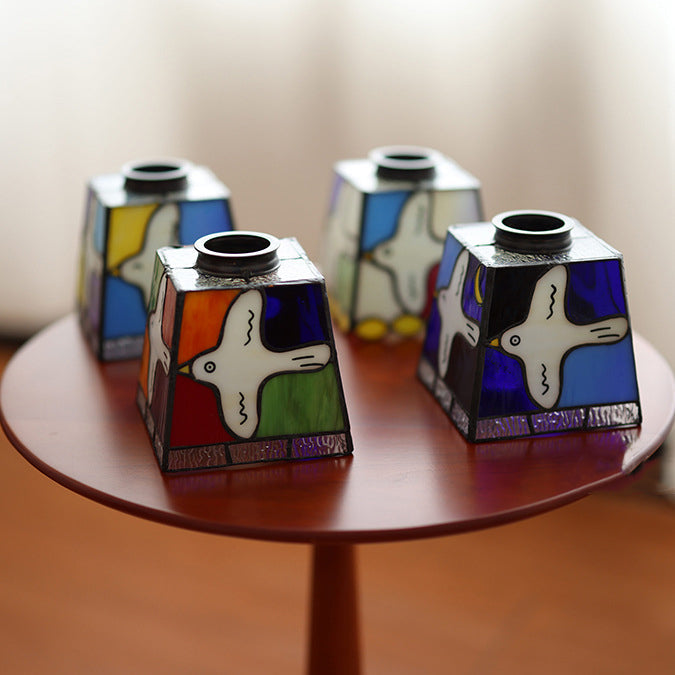 Traditional Vintage Square Peace Dove Copper Glass 1-Light Pendant Light For Living Room