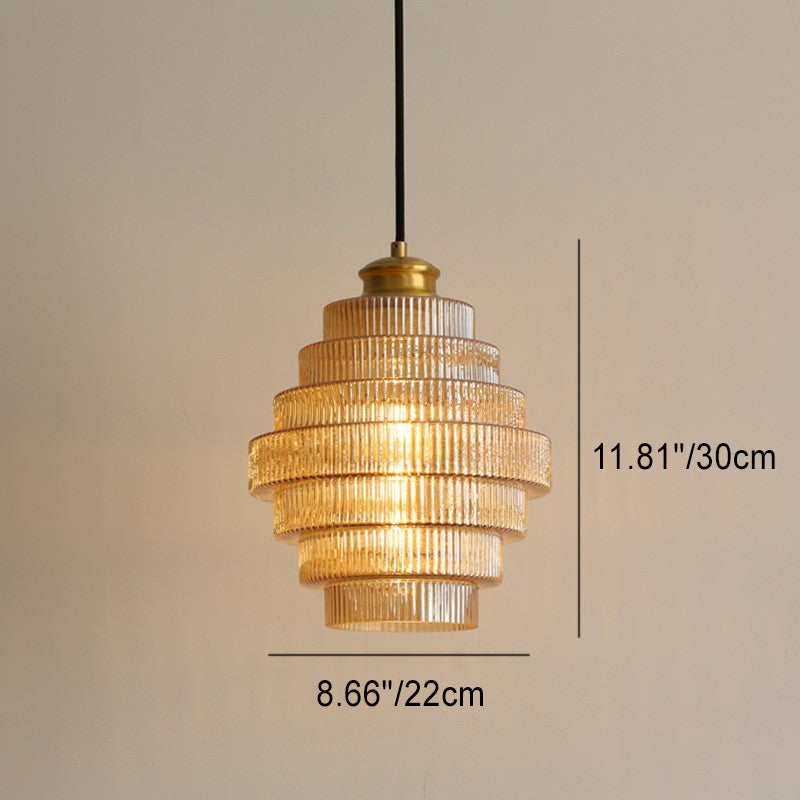 Traditional Vintage Striped Glass Round 1-Light Pendant Light For Living Room
