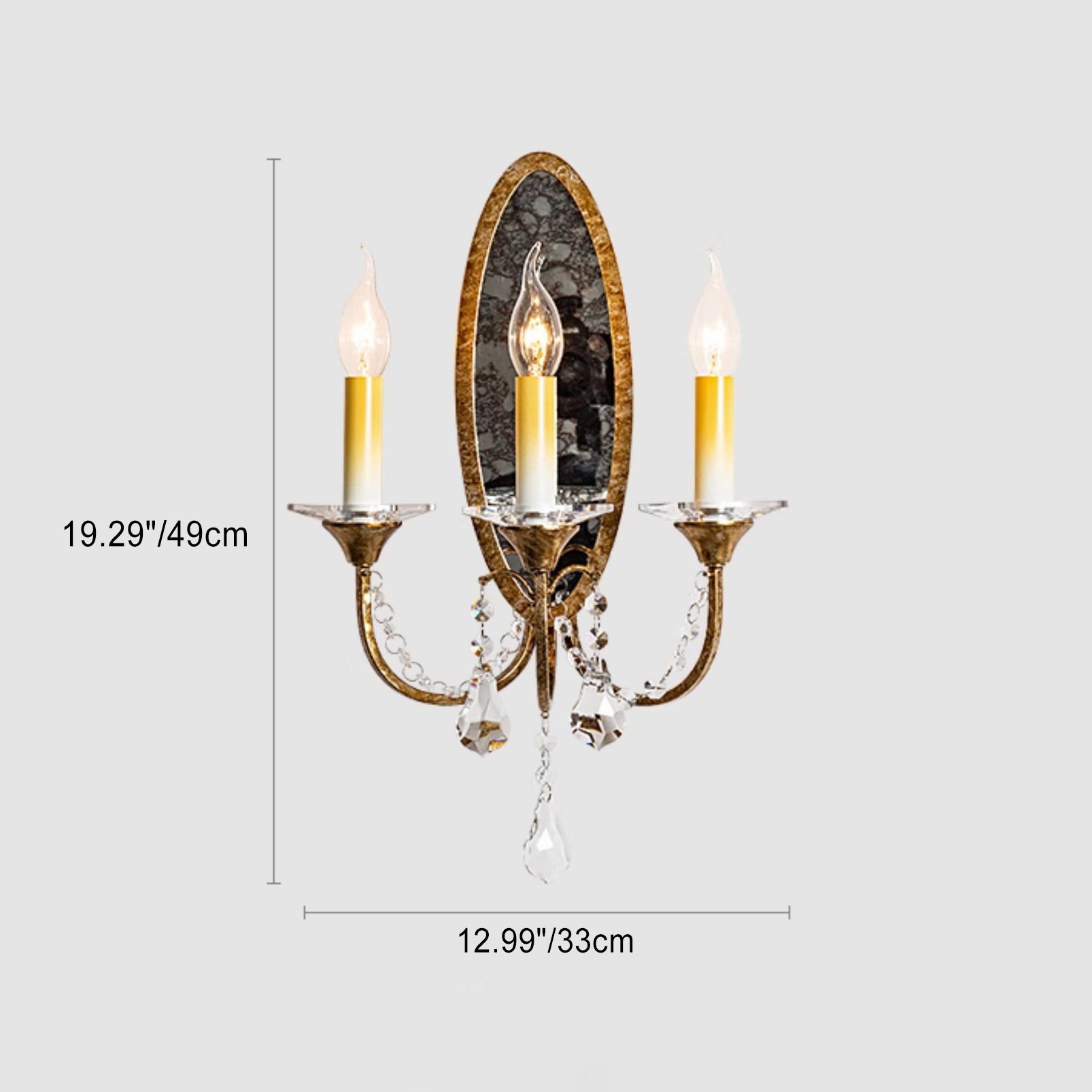 Traditional Vintage Tall Sconce Iron Crystal 3-Light Wall Sconce Lamp For Hallway