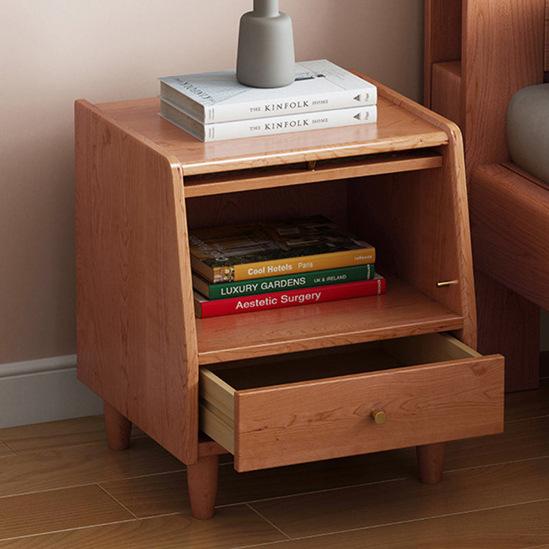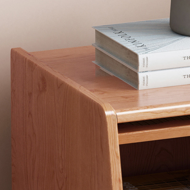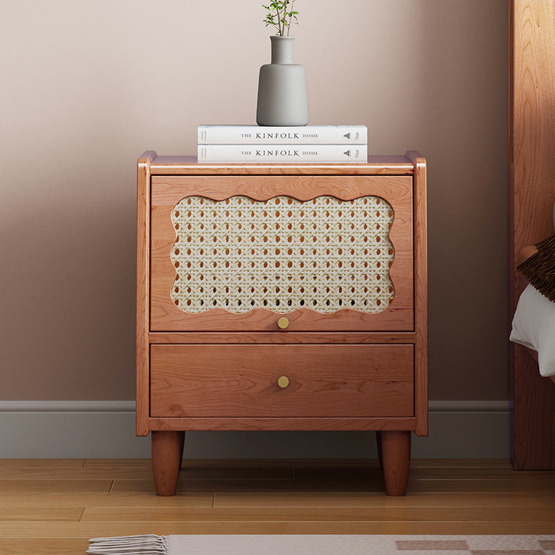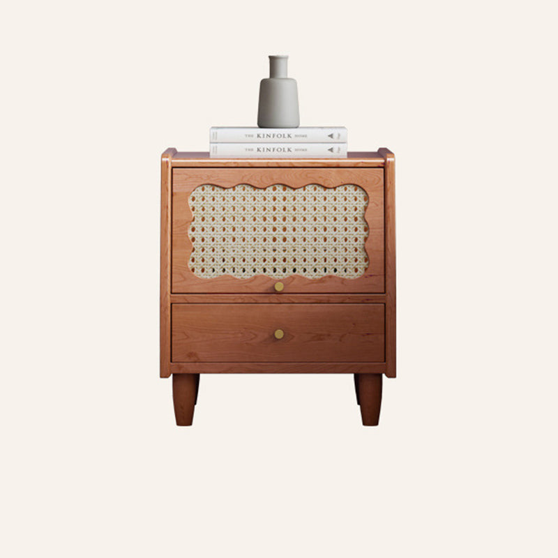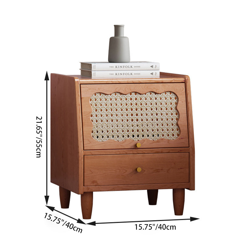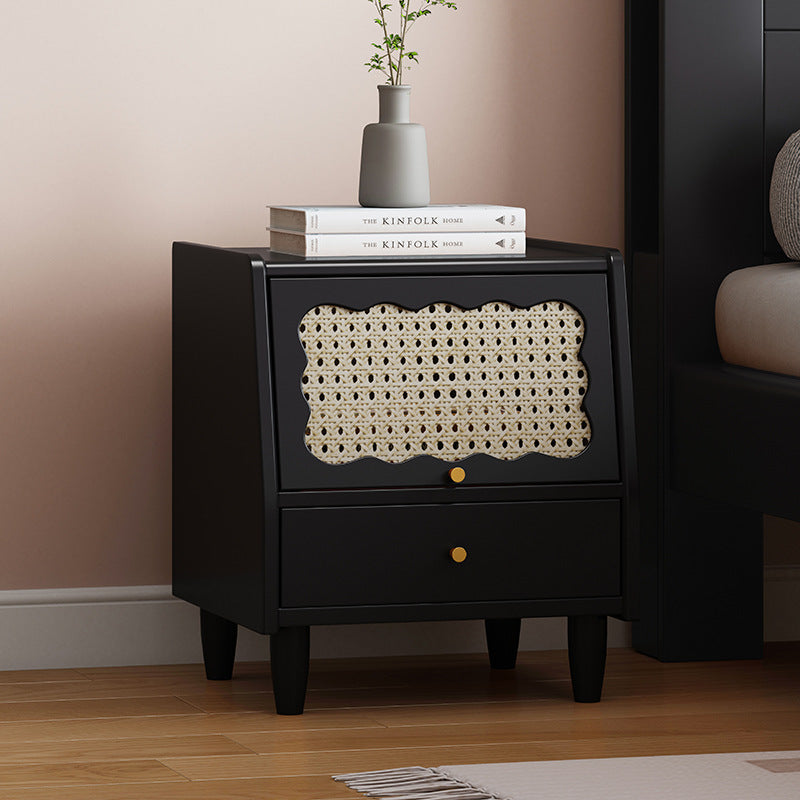 Traditional Vintage Trapezoidal Solid Wood Rattan Nightstand 1-Storage 1-Drawer For Bedroom