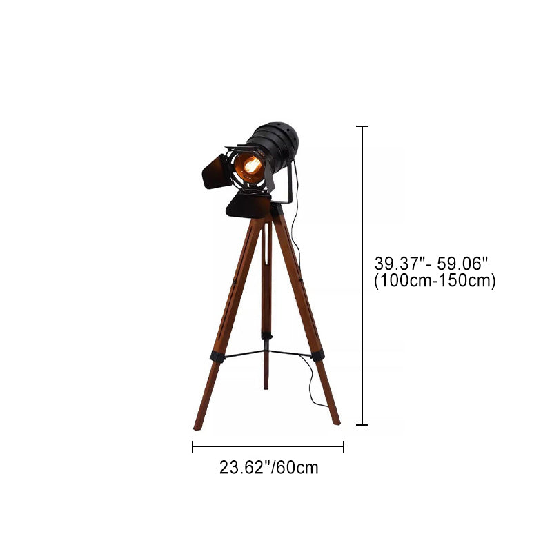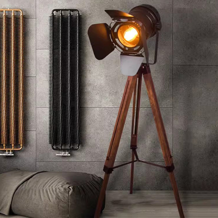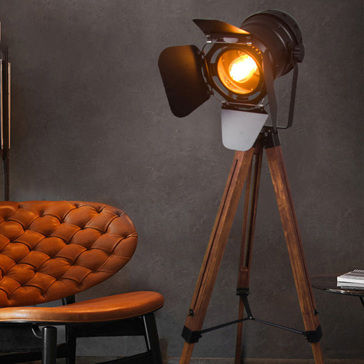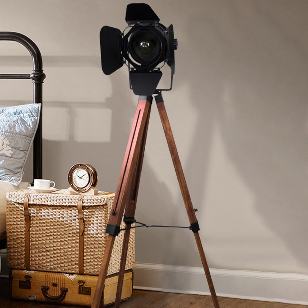 Traditional Vintage Tripod Camera Wooden Iron ABS 1-Light Standing Floor Lamp For Living Room