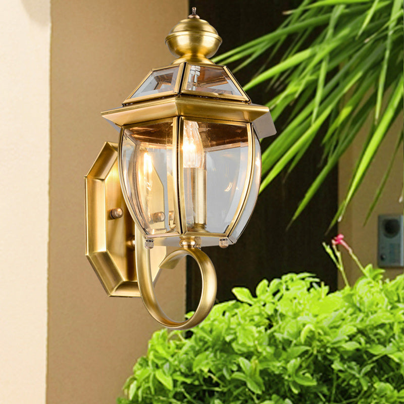 Traditional Vintage Waterproof Oval Copper Glass 1-Light Wall Sconce Lamp For Outdoor