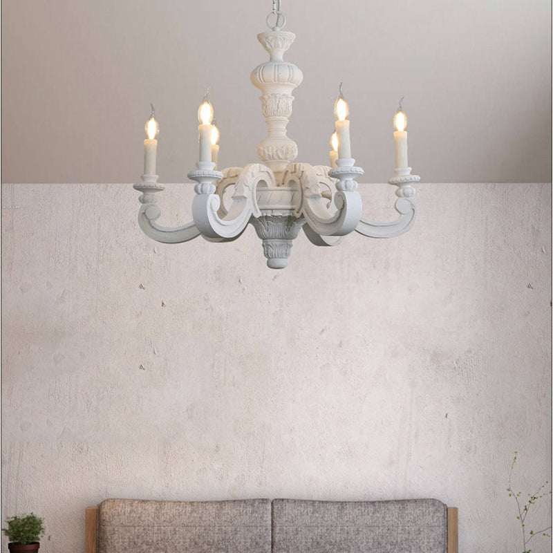 Traditional Vintage Wood Pillar Candle-Shaped 5/6/8 Light Chandeliers For Living Room