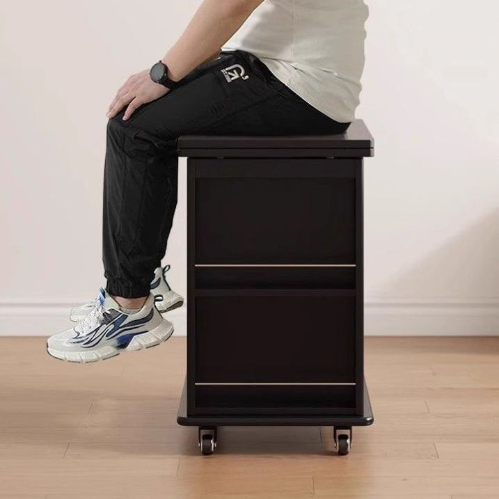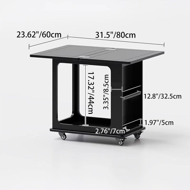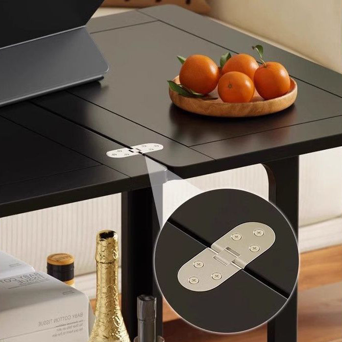 Crafted from durable wood, this traditional vintage-style side table features a black rectangular design with an expandable foldable tabletop and smooth-rolling wheels for easy mobility. Ideal for living rooms or bedrooms, it offers strong load-bearing capacity and versatile use.