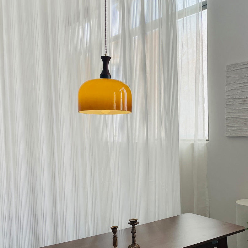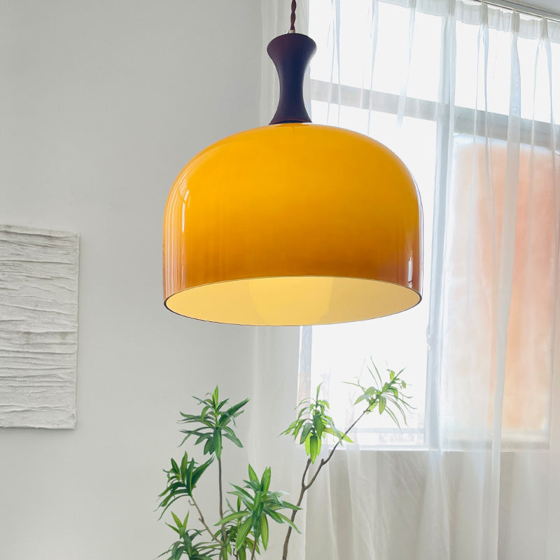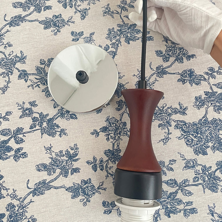 Traditional Vintage Wooden Glass Round Cylinder 1-Light Pendant Light For Living Room
