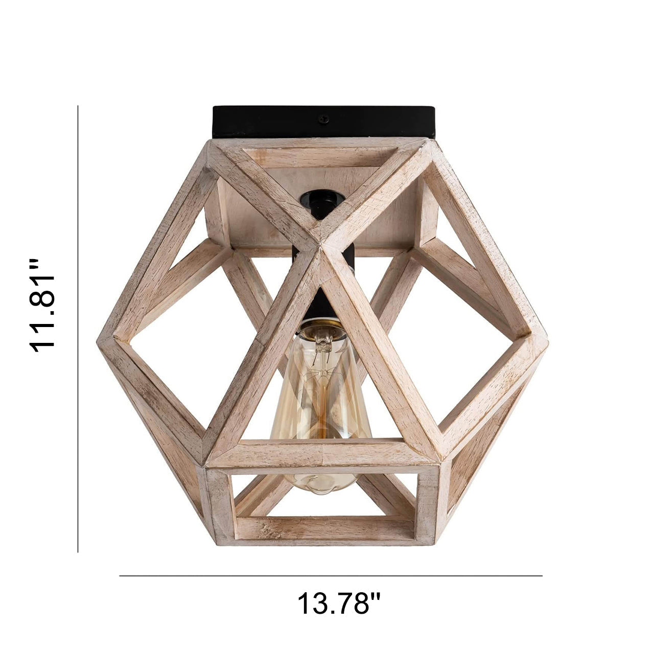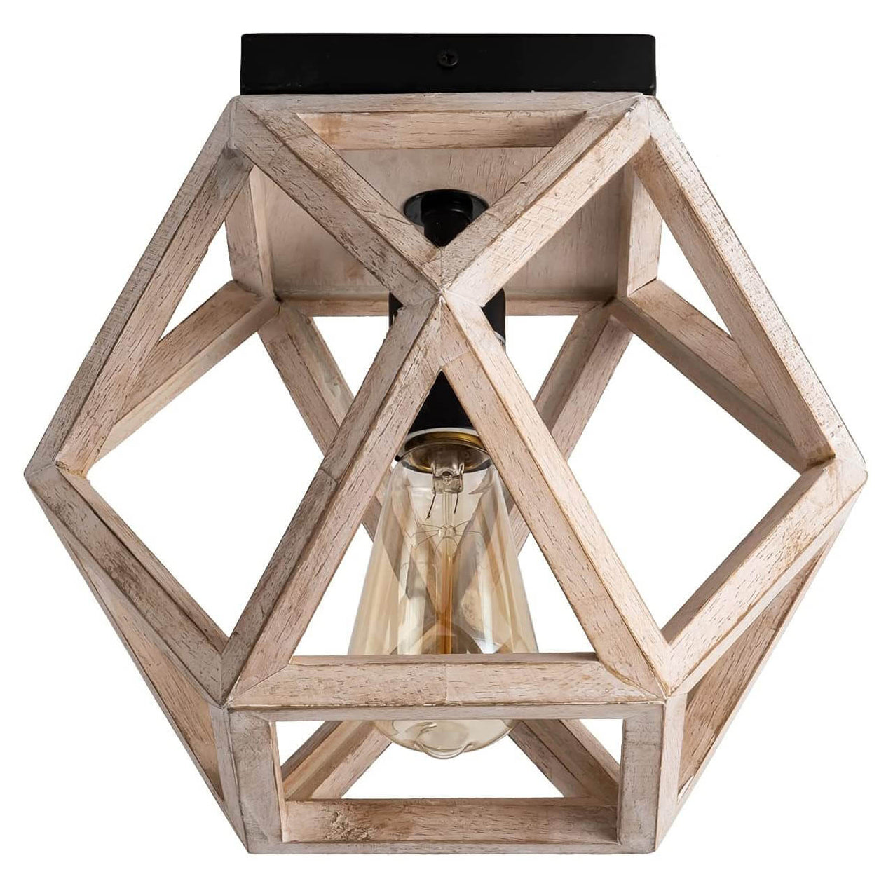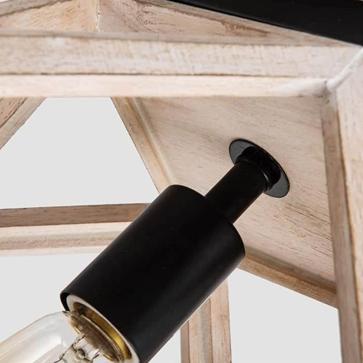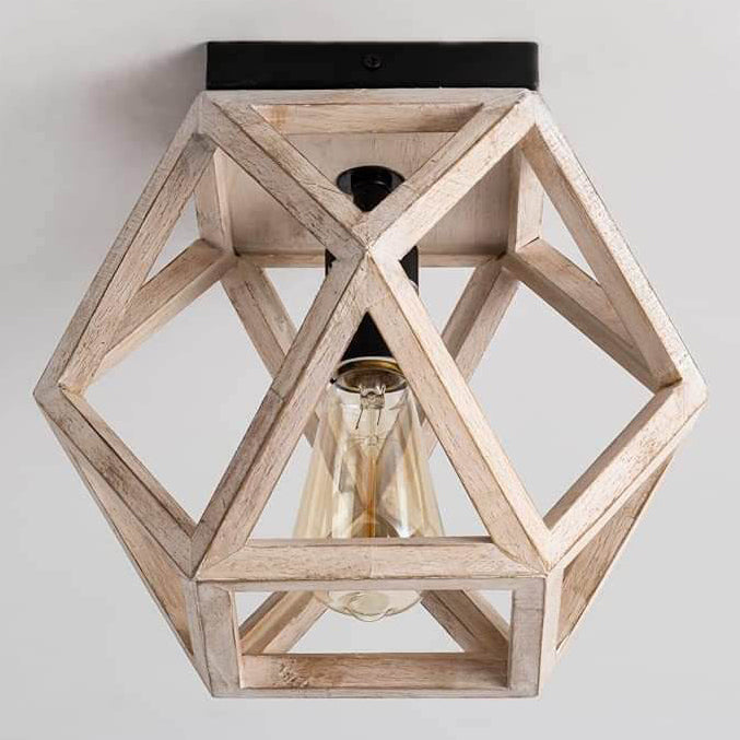 Vintage Aged Wooden Cage 1-Light Semi-Flush Mount Ceiling Light