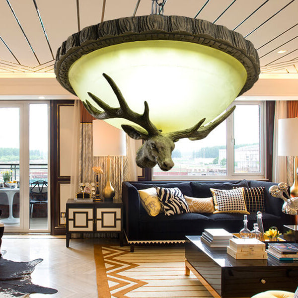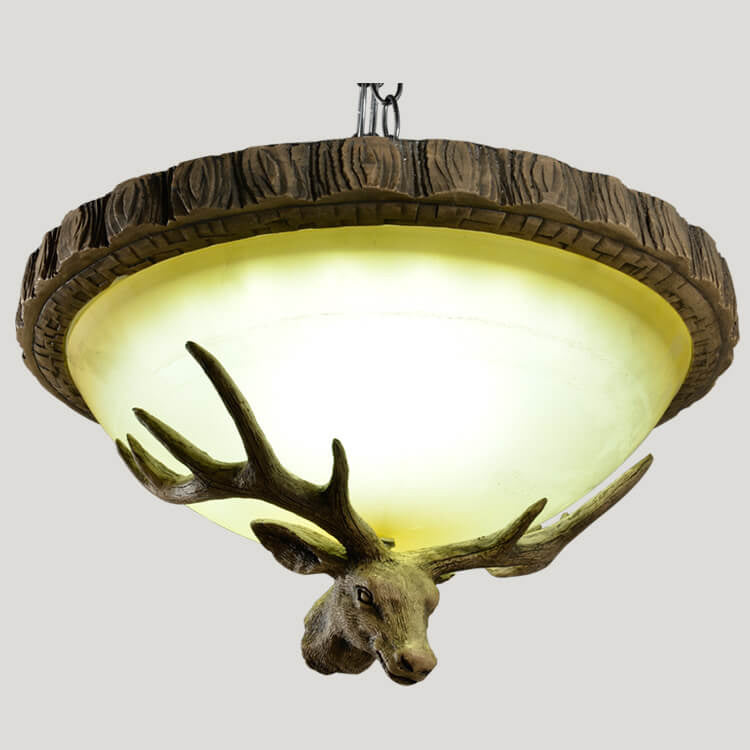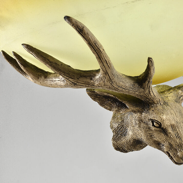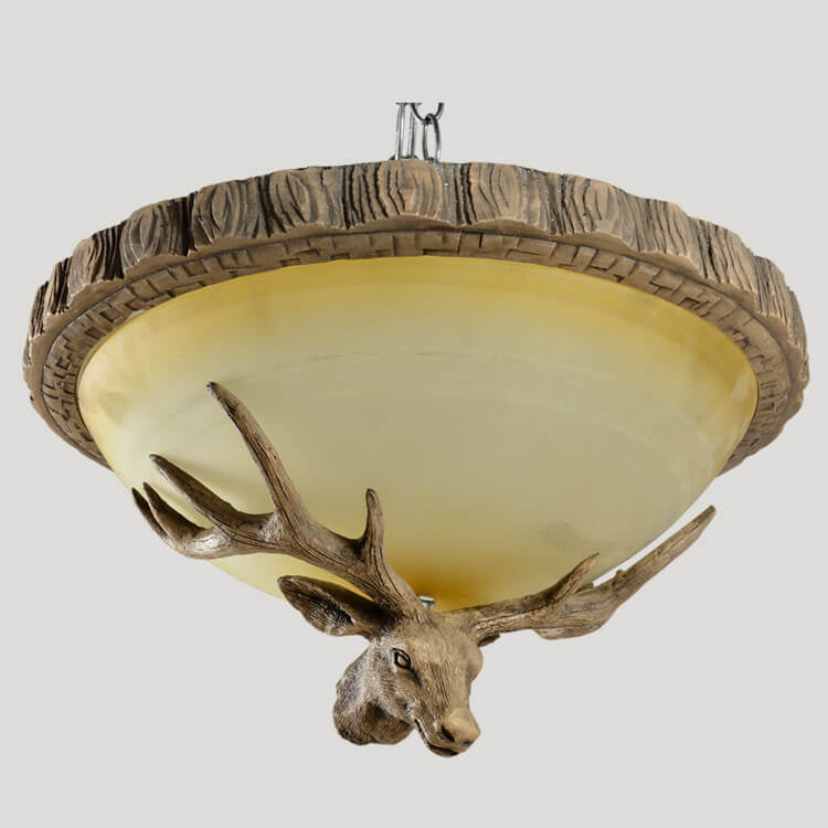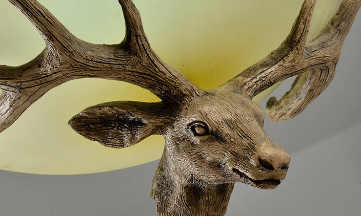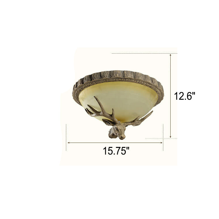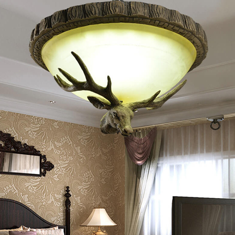 Vintage Country Deer Head Dome Resin LED Flush Mount Ceiling Light