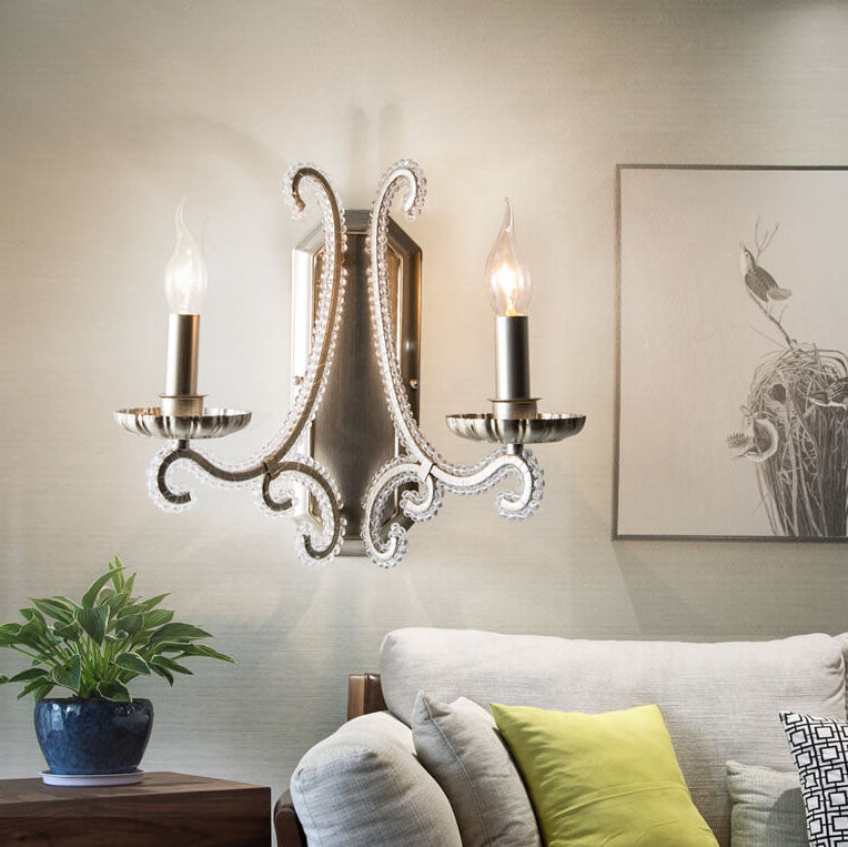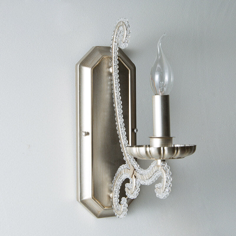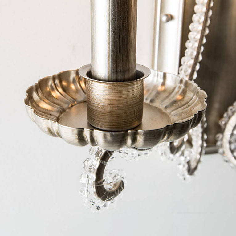 Vintage French Crystal Candelabra Iron 1/2 Light Wall Sconce Lamp