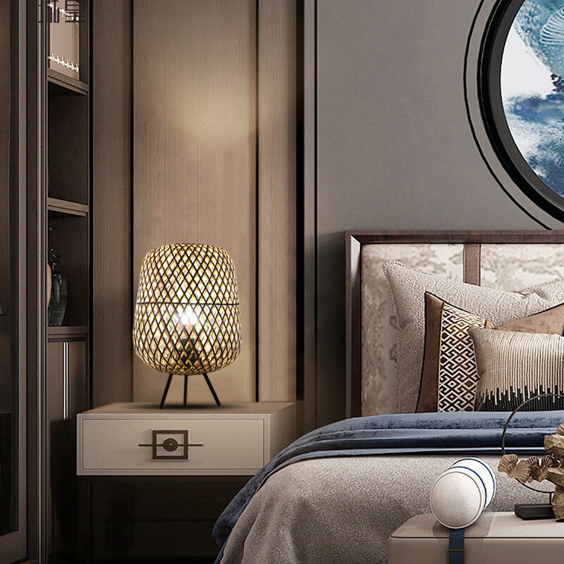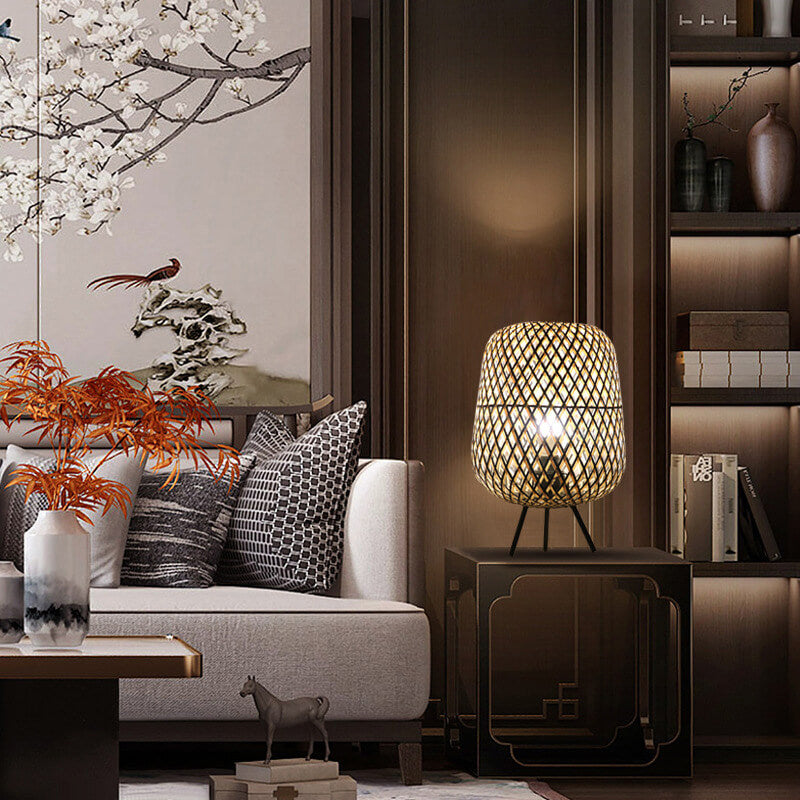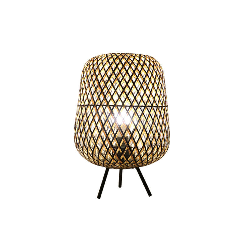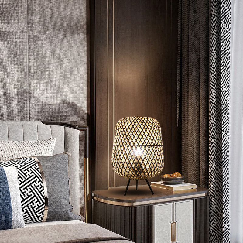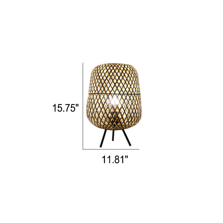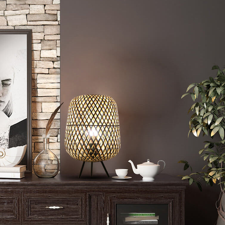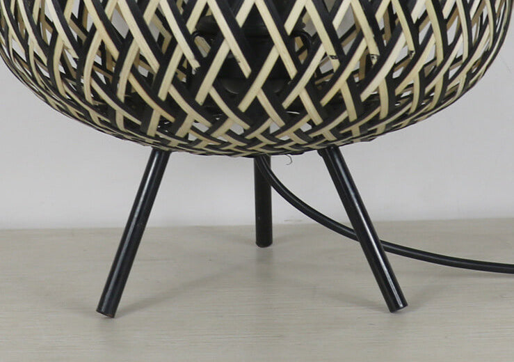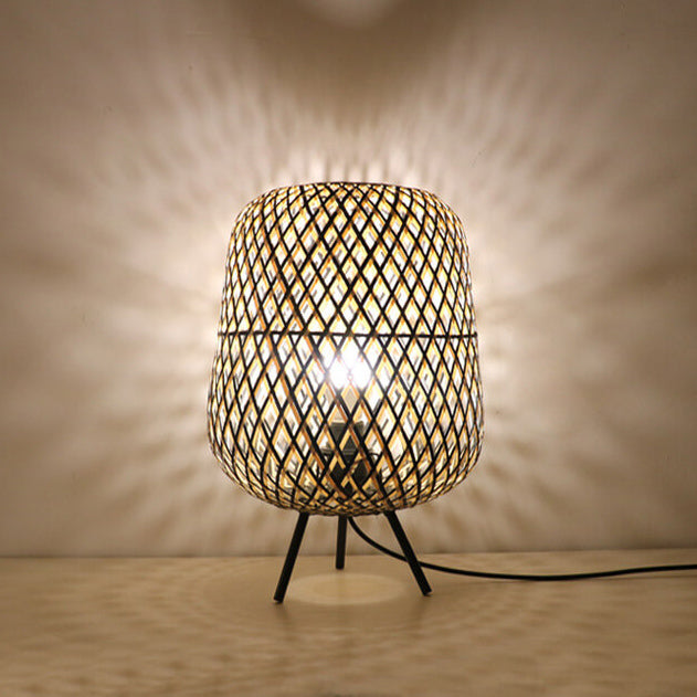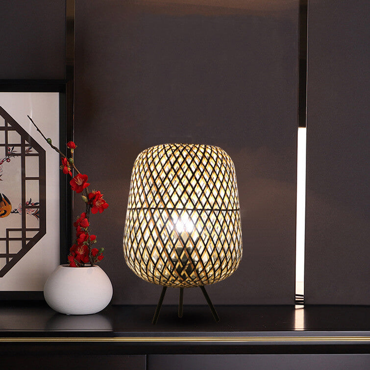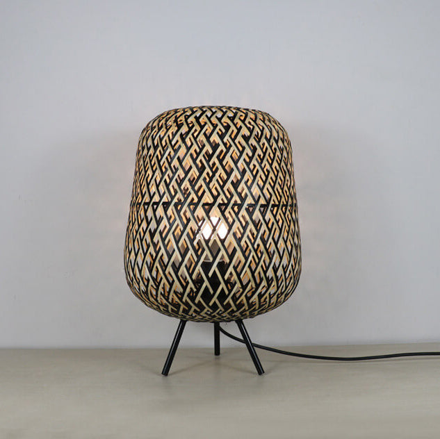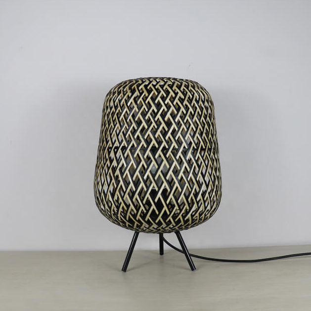 Vintage Japanese Rattan Weaving Oval Ball 1-Light Table Lamp