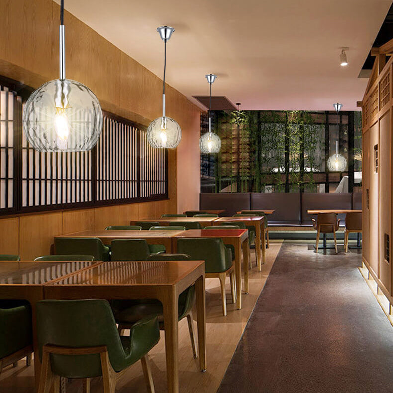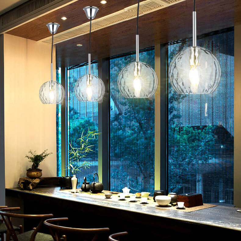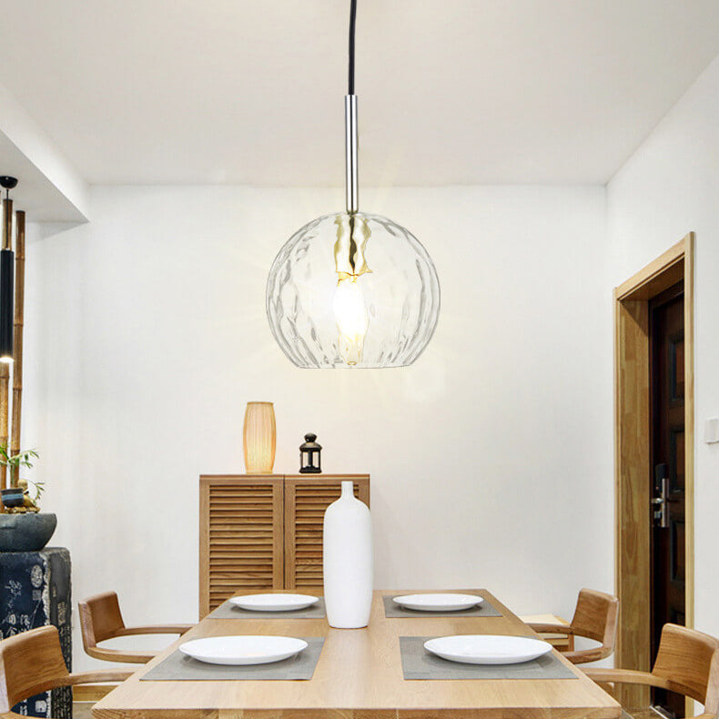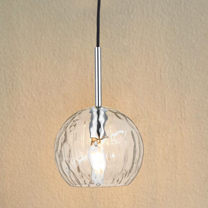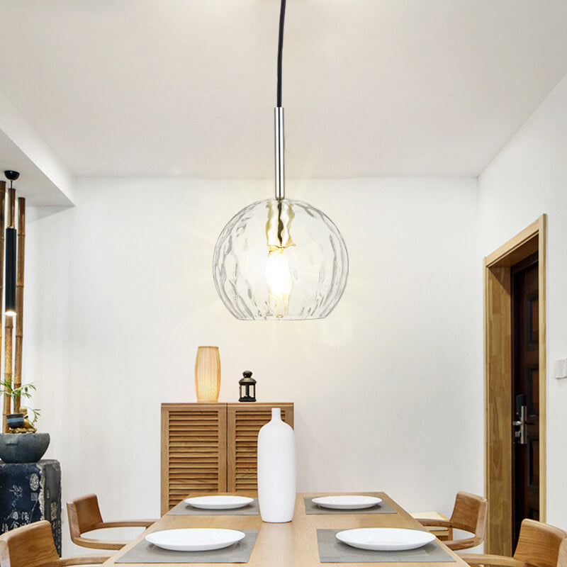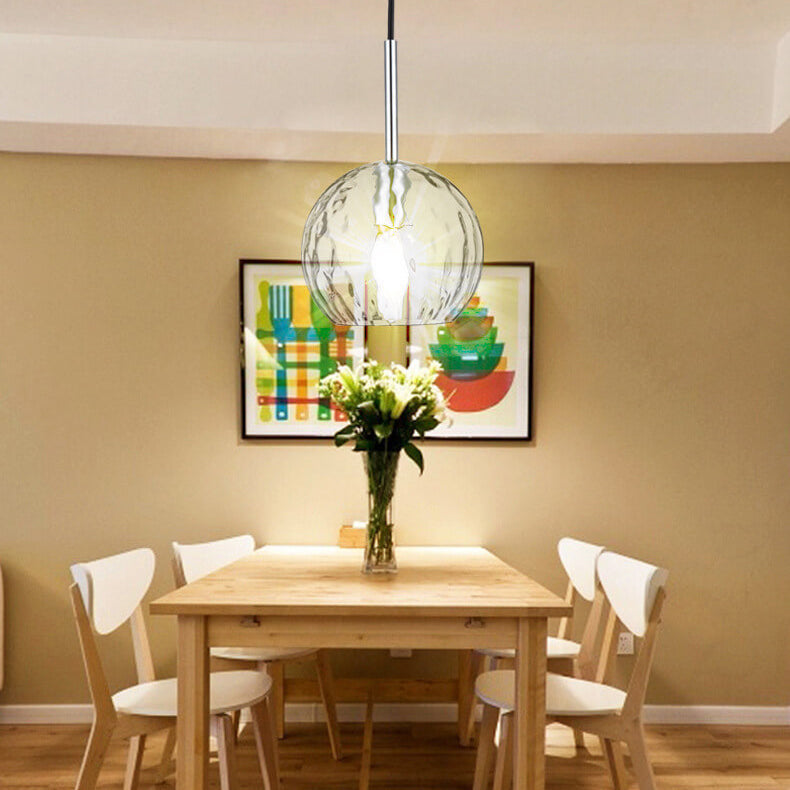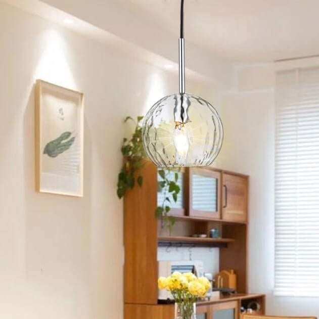 Vintage Minimalist Chrome Clear Round Ball Glass 1-Light Pendant Light