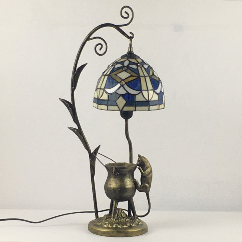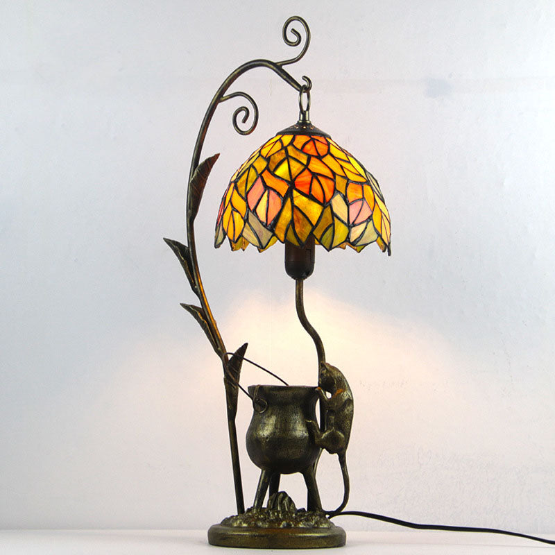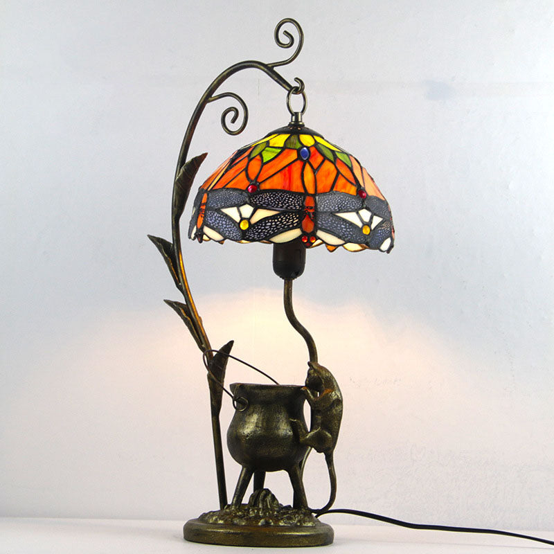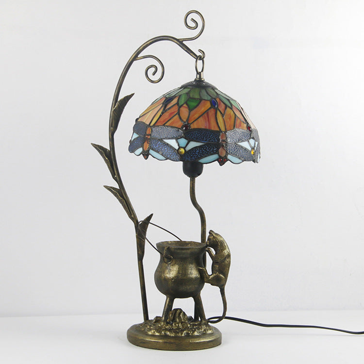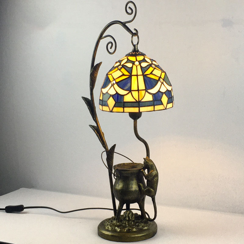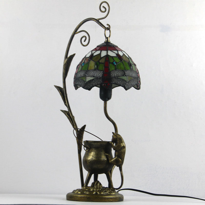 Vintage Tiffany Dome Stained Glass Mouse Base 1-Light Table Lamp