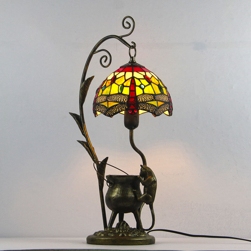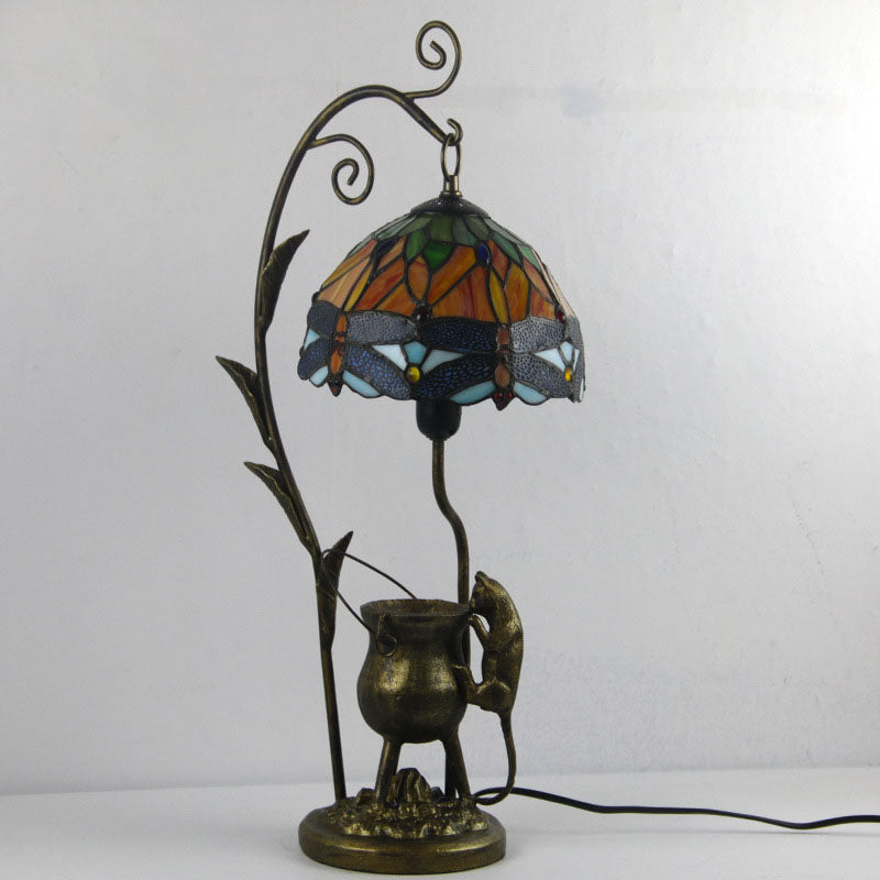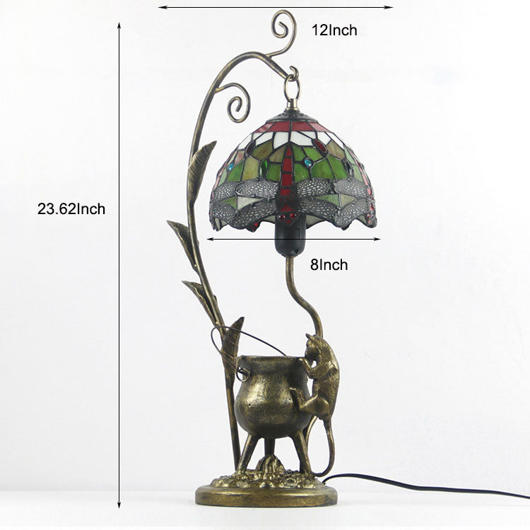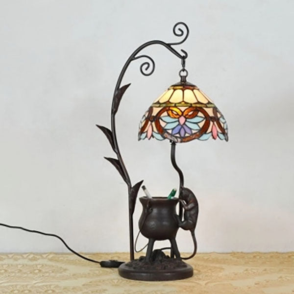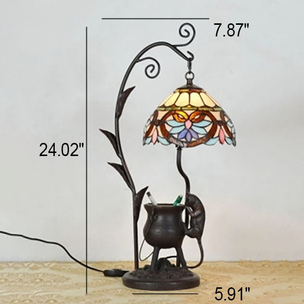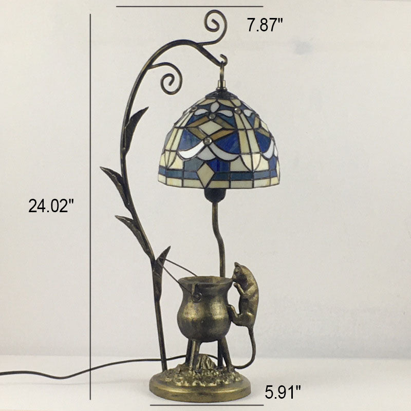 Vintage Tiffany Dome Stained Glass Mouse Base 1-Light Table Lamp